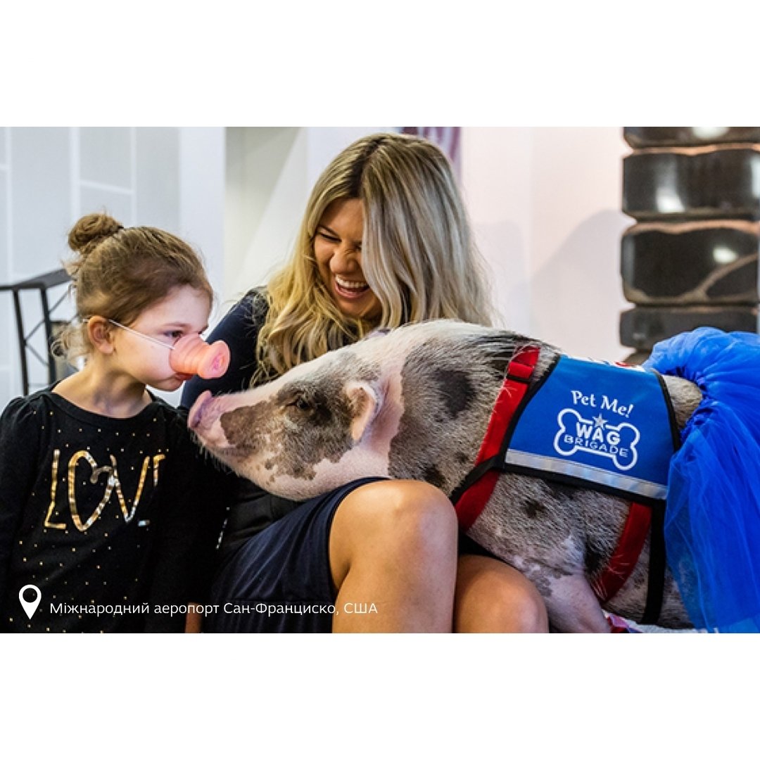 Чули про тварин-терапевтів, які допомагають мандрівникам, що нервують? У цьому аеропорту працює бригада таких помічників, серед яких є Лілу — перша свиня-терапевт. Тварини винюхують та заспокоюють напружених мандрівників — стресу ніби й не було