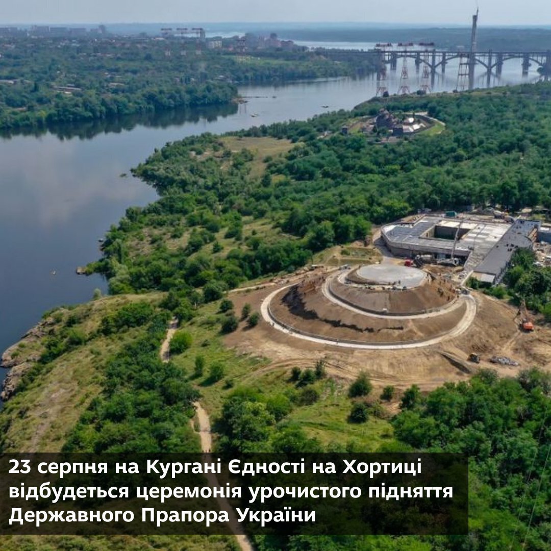 23 серпня о 9:00 на Кургані Єдності на Хортиці відбудеться церемонія урочистого підняття Державного Прапора України в рамках реалізації проєкту "Найбільший державний прапор України".