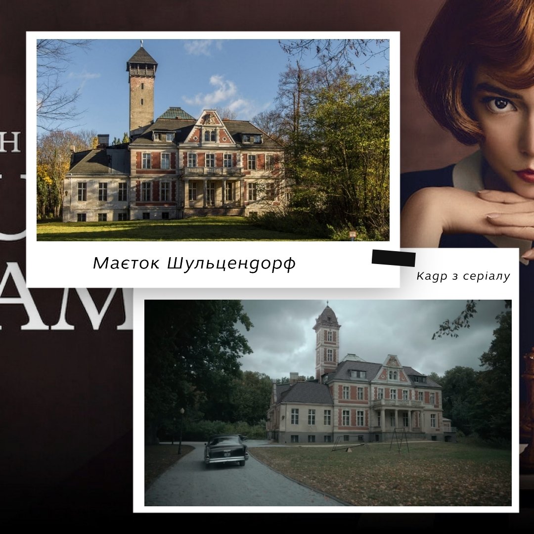 - Дитячий притулок Метуен, в якому Бет навчилась грати в шахи, - це маєток Шульцендорф на околиці Берліна. Його вежа дуже нагадує Середньовічну Європу. Тому в процесі постпродакшину її довелось змінити.
