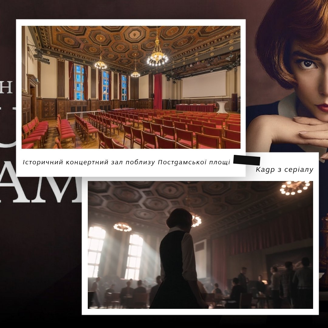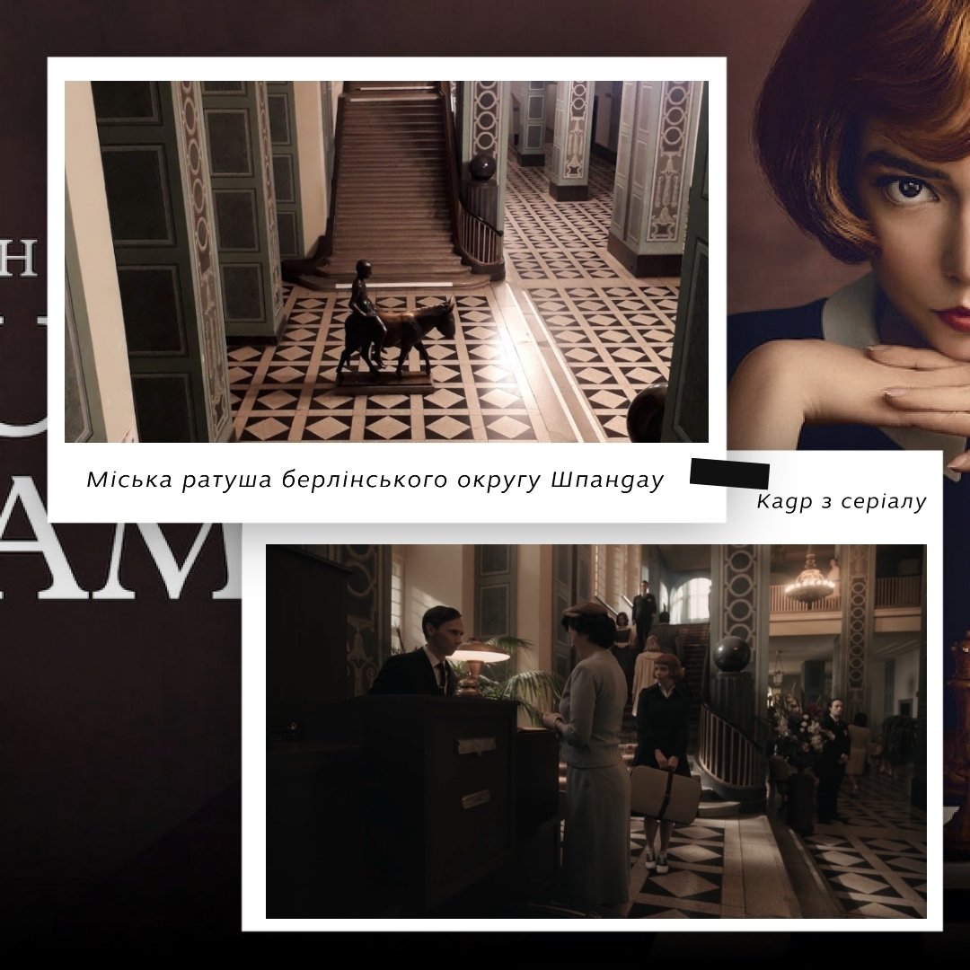 - У третьомі епізоді Бет і Альма вирушають на шаховий турнір у Цинцинаті. Фоє їх готелю – міська ратуша берлінського округу Шпандау. Вона відома найбільшим у світі адвент-календарем.