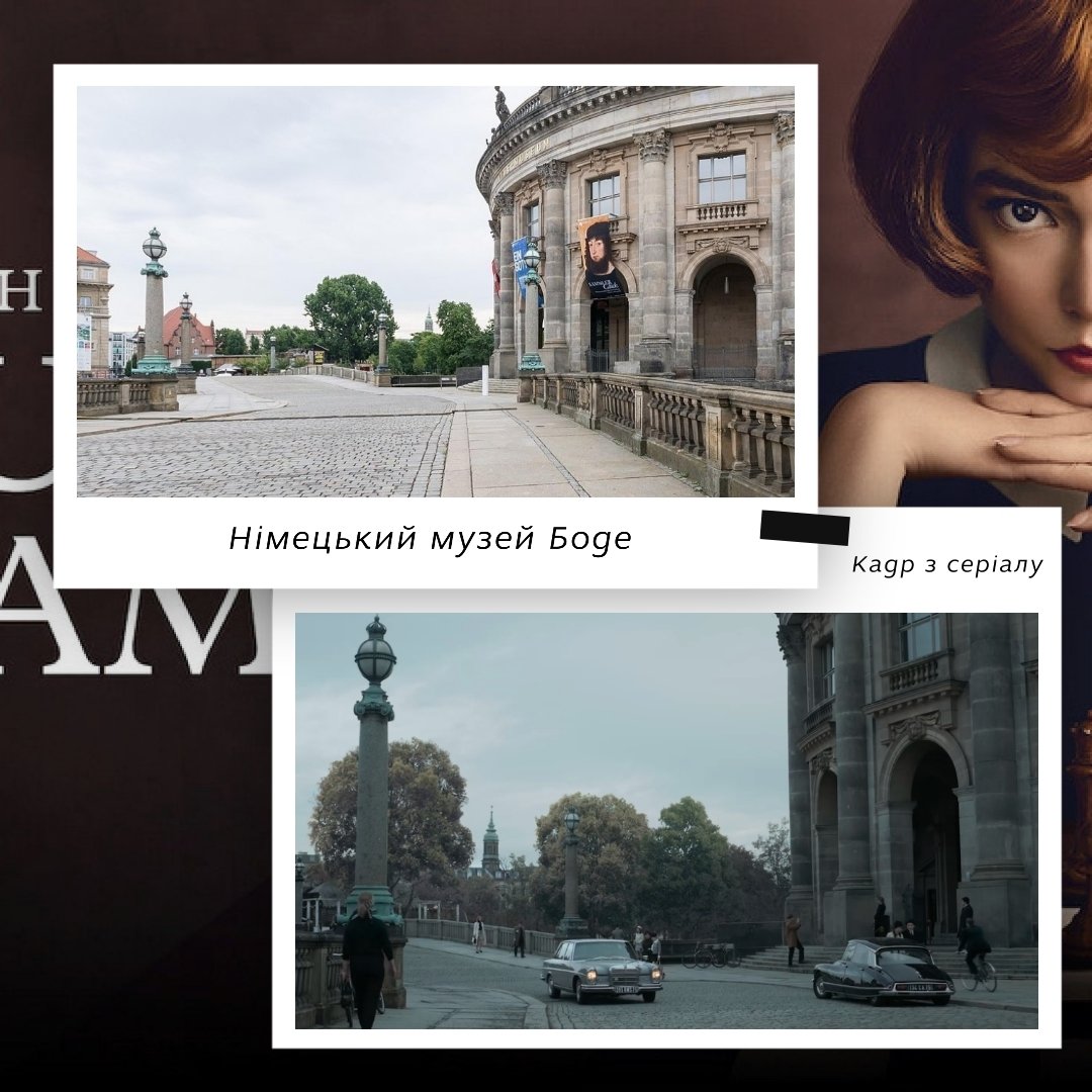 - Париж у серіалі також знятий у Берліні. У шостому епізоді, коли Бет вирушає в Париж на матч-реванш з Борговим, на екрані часто з’являється німецький музей Боде. В його зібраннях – колекції експонатів мистецтва Візантії.