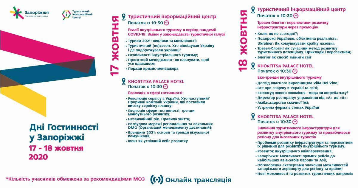 Програма локацій Дні гостинності на 17-18 жовтня. Зберігайте собі, обирайте теми, які найбільше вас цікавлять та долучайтеся онлайн.