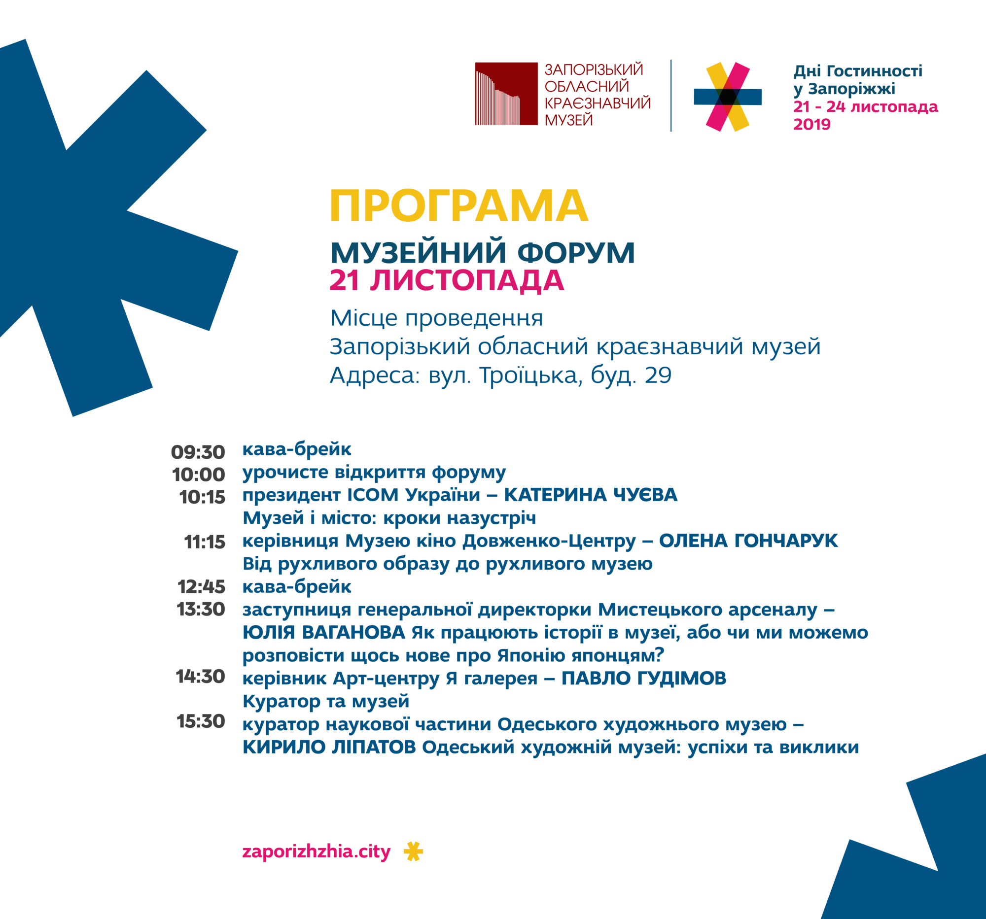 Музейний форум – зустріч, що покликана об’єднати спільноту музейних керівників, працівників і новаторів задля пошуку відповідей на актуальні питання галузі.