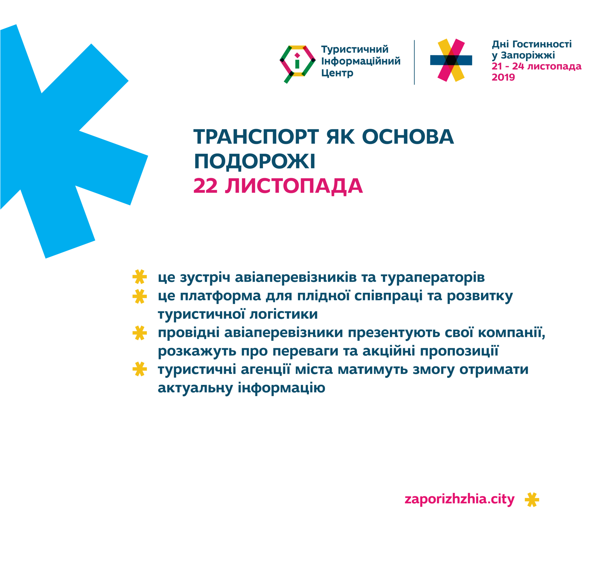 Додаткова увага буде приділена логістичному сполученню. Ми плануємо розповісти про можливості нового терміналу Міжнародного аеропорту Запоріжжя і надати майданчик для виступу всім авіа перевізникам аби презентувати свої компанії.