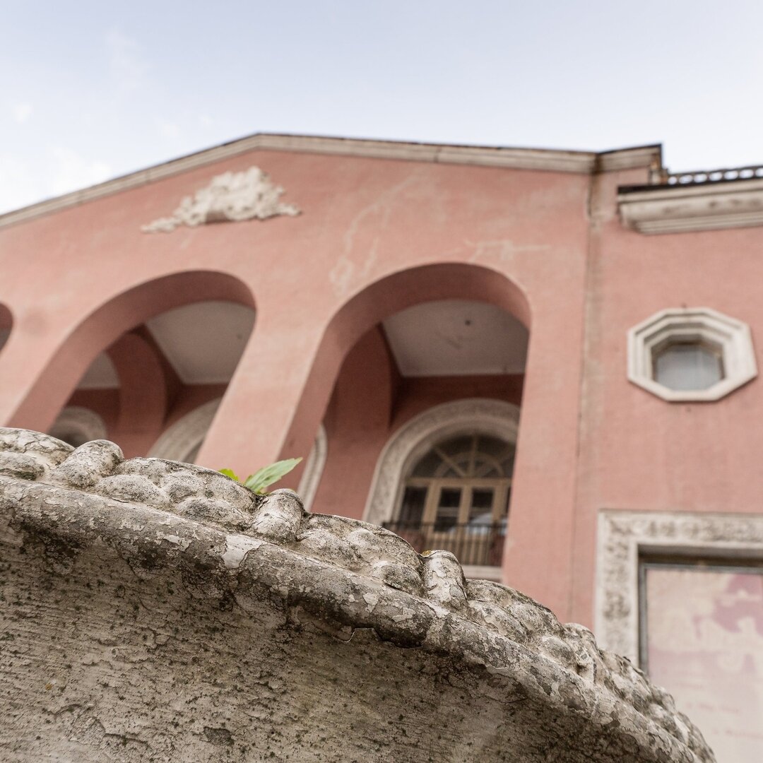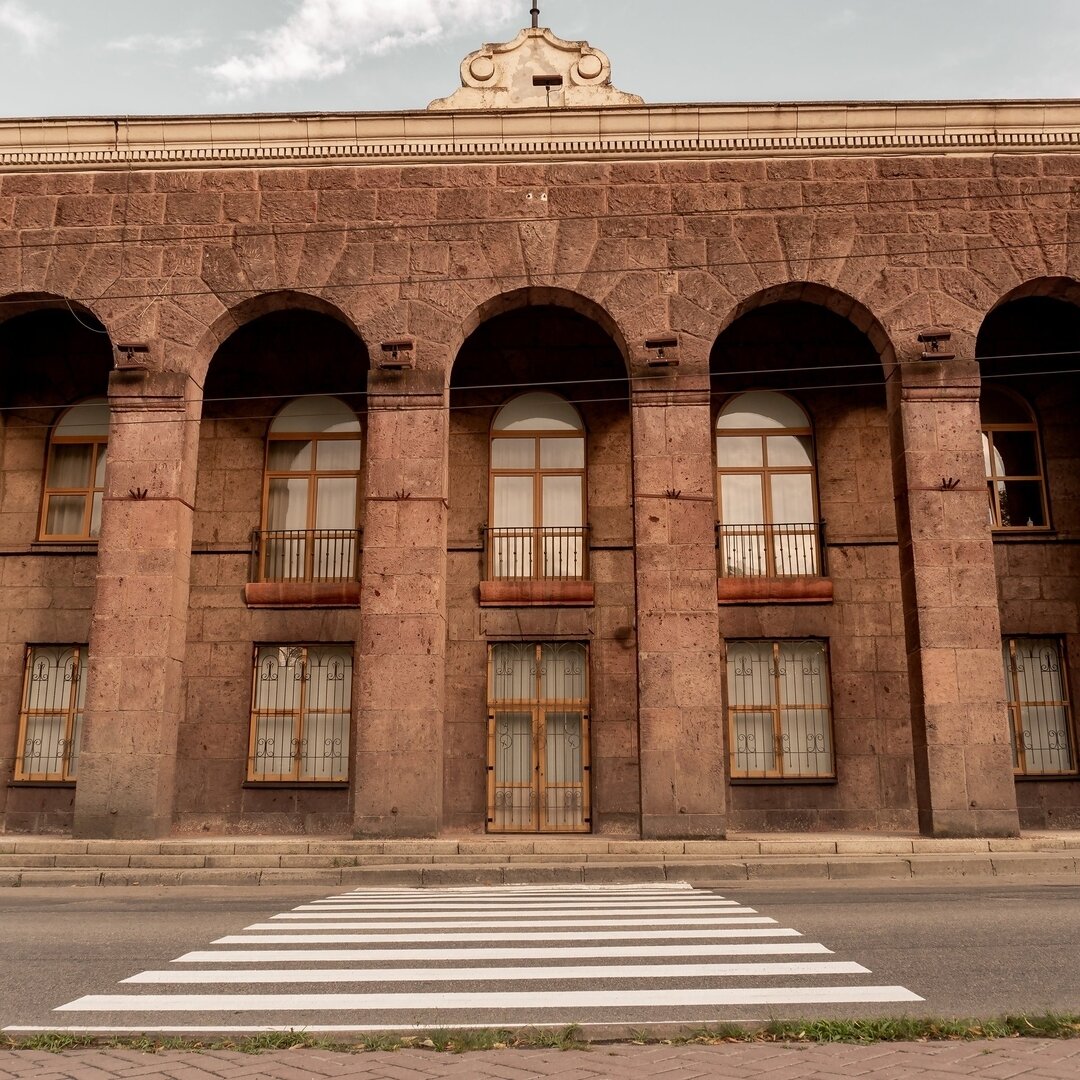 Каву взяли, тепер можна роздивитись будинок. Його зведено в 1949 році за проєктом архітектора Георгія Вегмана. Бачите скульптуру вгорі? “Робітник і колгоспниця” - одна з робіт відомого запорізького архітектора Михайла Худаса. Саме він свого часу створив знаменитий фонтан у сквері Піонерів, композиції на будівлях театру імені Магара, вокзалу Запоріжжя-1.