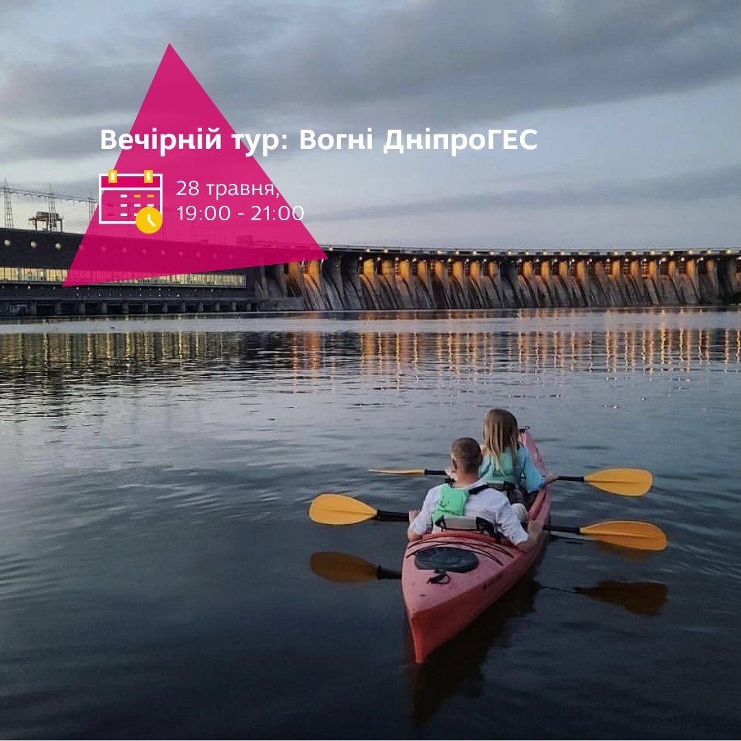 Вечірній тур: Вогні ДніпроГЕС, вечірня прогулянка на каяках та сапах.