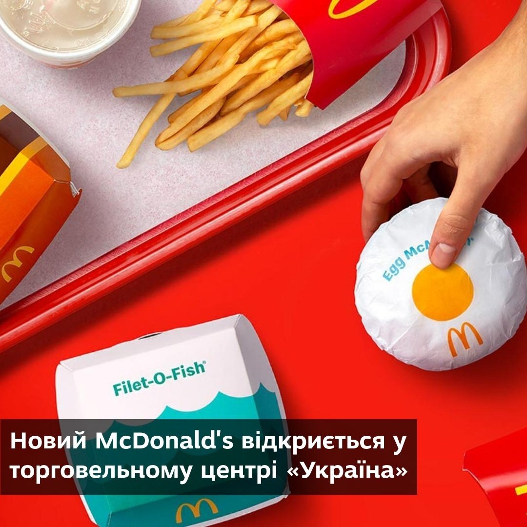 • Новий McDonald's відкриється у торговельному центрі «Україна». Третій у мережі ресторан швидкого харчування у Запоріжжі зроблять найсучаснішим. Для гостей працюватиме спеціальне вікно МакЕкспрес із роботом-транспортером та термінали самообслуговування.