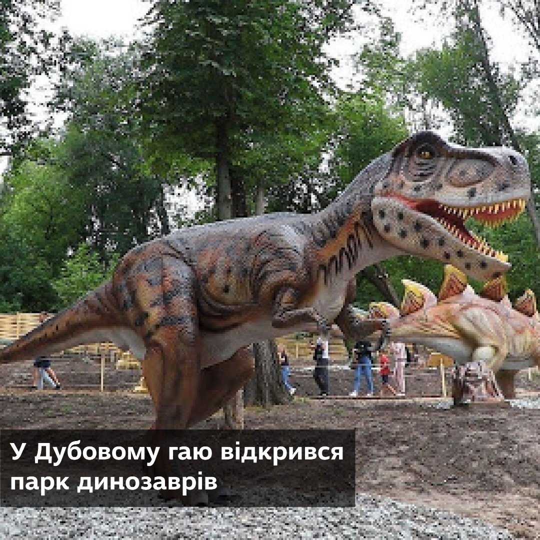 • У Дубовому гаю відкрився парк динозаврів. На території встановлено понад 30 інтерактивних роботизованих динозаврів, які рухаються, дихають та гарчать. Локація працює на постійній основі, тому відвідати динопарк можна у будь-який день.