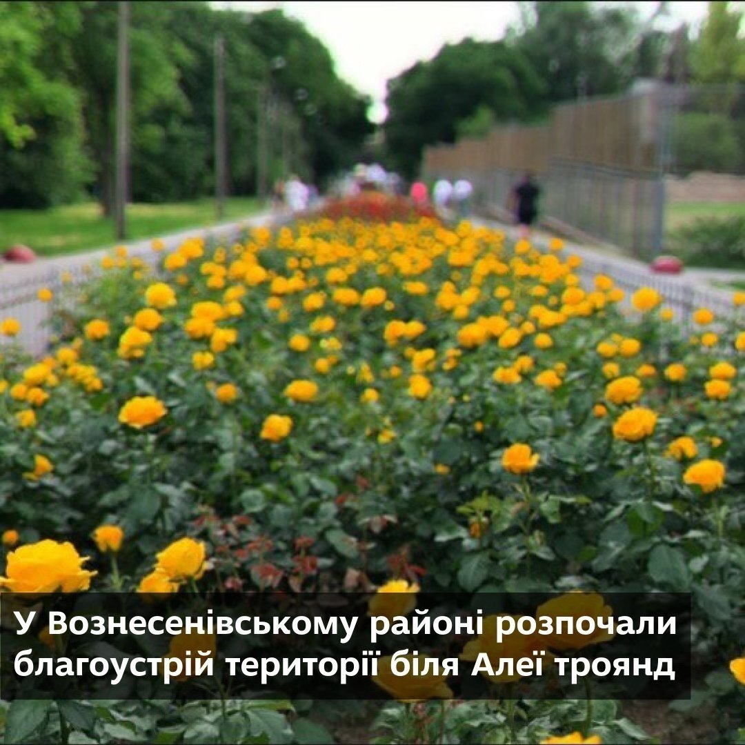 • У Вознесенівському районі Запоріжжя розпочали благоустрій території біля Алеї троянд. У результаті буде наведено лад на прибудинковій території кількох будинків. Тут також відремонтують проїжджу частину, тротуари, замінять бордюри та освітлення, встановлять 4 спортивні та 4 дитячі майданчики.