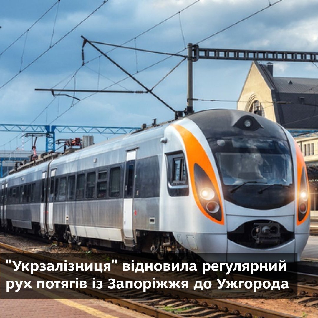 • "Укрзалізниця" відновила регулярний рух потягів із Запоріжжя до Ужгорода. Продаж квитків відкритий з 12 квітня. Також у розклад додали потяг 119/120 із Запоріжжя до Львова. Місце в плацкарті коштує 234 гривні, в купе - 542 гривні.