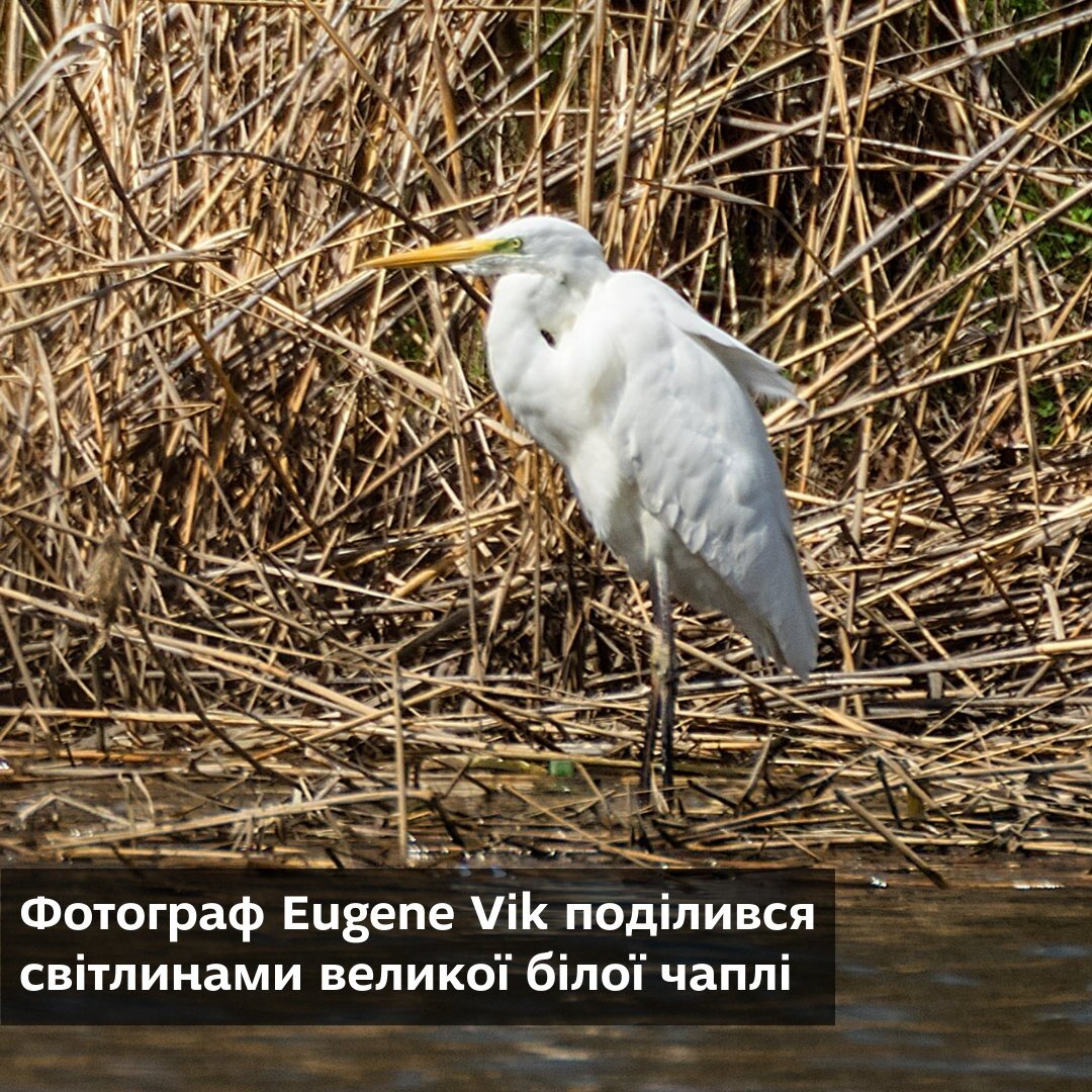 • Фотограф Eugene Vik поділився світлинами великої білої чаплі. Природною зоною проживання цих птахів є Північна та Південна Америка, Африка, помірні та тропічні широти Європи. Цей вид чапель гніздиться по всій території України, однак, є рідкісним для нашого регіону. Дорослий птах має зріст понад один метр, а розмах крил сягає 140 см.