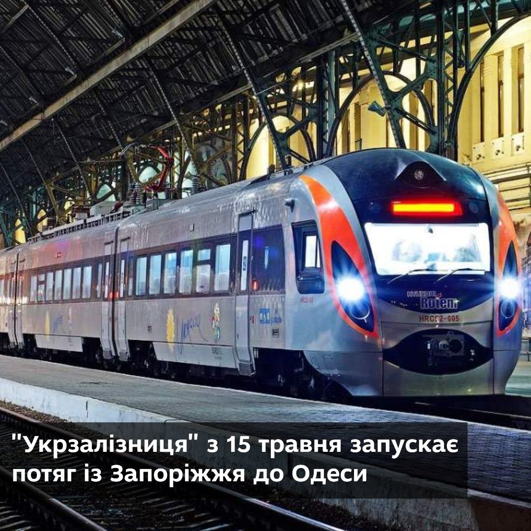 "Укрзалізниця" з 15 травня запускає потяг із Запоріжжя до Одеси. В курортне місто поїзд №141/142 Маріуполь-Одеса курсуватиме по непарних днях: відправлення із Запоріжжя о 4:20, прибуття о 17:20. Зворотні рейси відбуватимуться по парних днях: відправлення з Одеси о 18:50, прибуття в Запоріжжя о 8:03 наступного дня. Потяг ходитиме до жовтня.