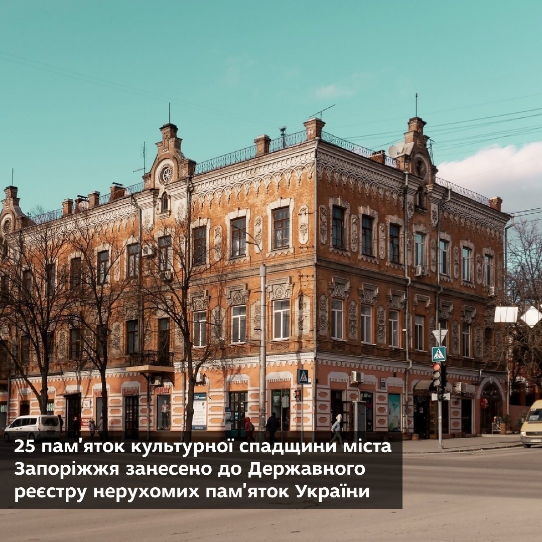25 пам'яток культурної спадщини міста Запоріжжя занесено до Державного реєстру нерухомих пам'яток України. Серед них будинки Шостого селища, прибутковий будинок Лещинського, млин Нібура. З повним переліком пам'яток можна ознайомитися за посиланням у сторіз.
