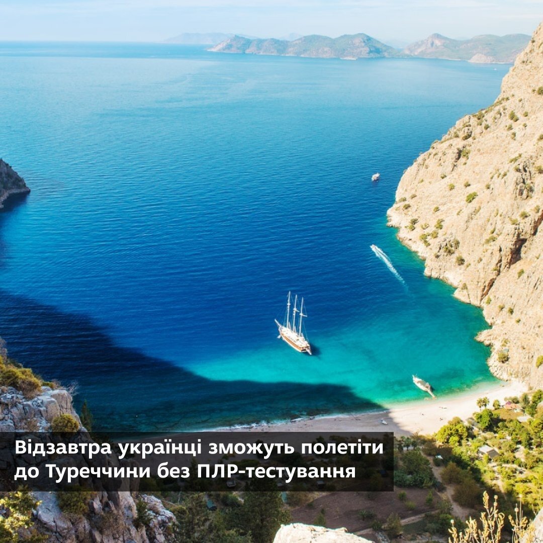 • Відзавтра українці зможуть полетіти до Туреччини без ПЛР-тестування. Туреччина з 15 травня звільнить українців від необхідності здавати ПЛР-тести на коронавірус. Незмінною залишається вимога заповнити спеціальну форму перед вильотом.