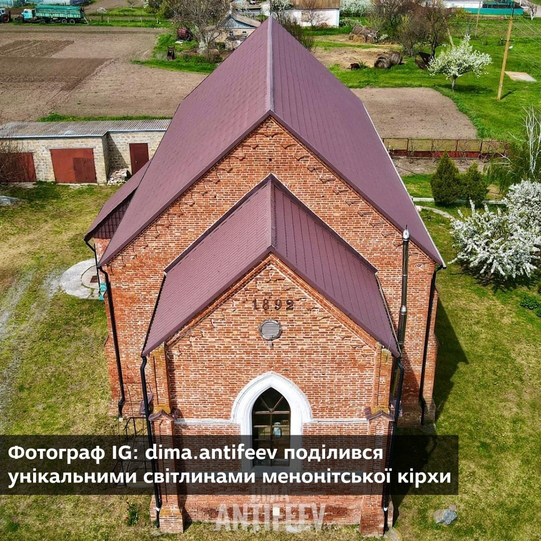 - Фотограф @dima.antifeev поділився унікальними світлинами менонітської кірхи в селі Кутузівка (колишнє менонітське поселення Петерсгаген). Церкву у псевдоготичному стилі збудували ще наприкінці позаминулого століття – у 1892 році.