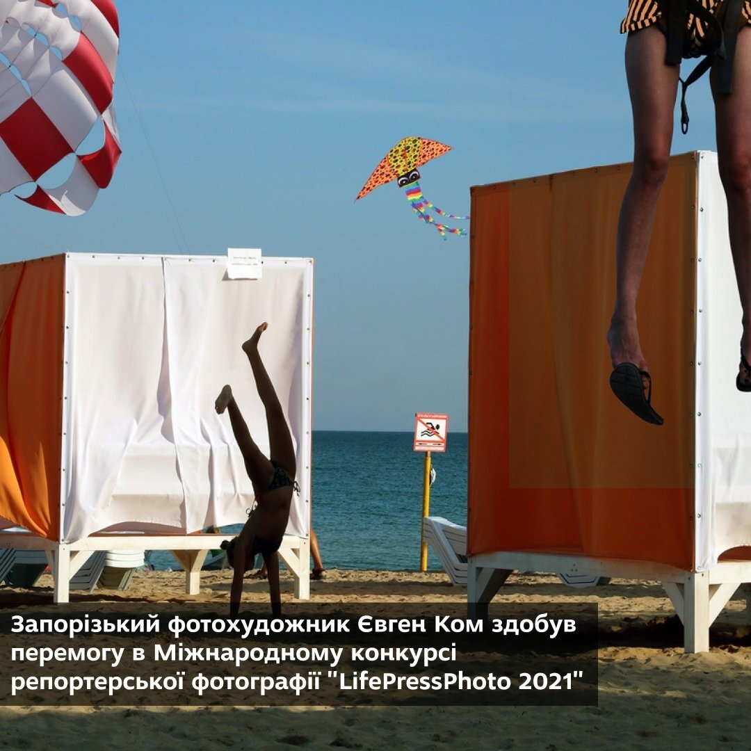 Запорізький фотохудожник Євген Ком здобув перемогу в Міжнародному конкурсі репортерської фотографії "LifePressPhoto 2021". Золоту медаль у номінації "Мистецтво, розваги" автору принесла світлина "Пляжні розваги".