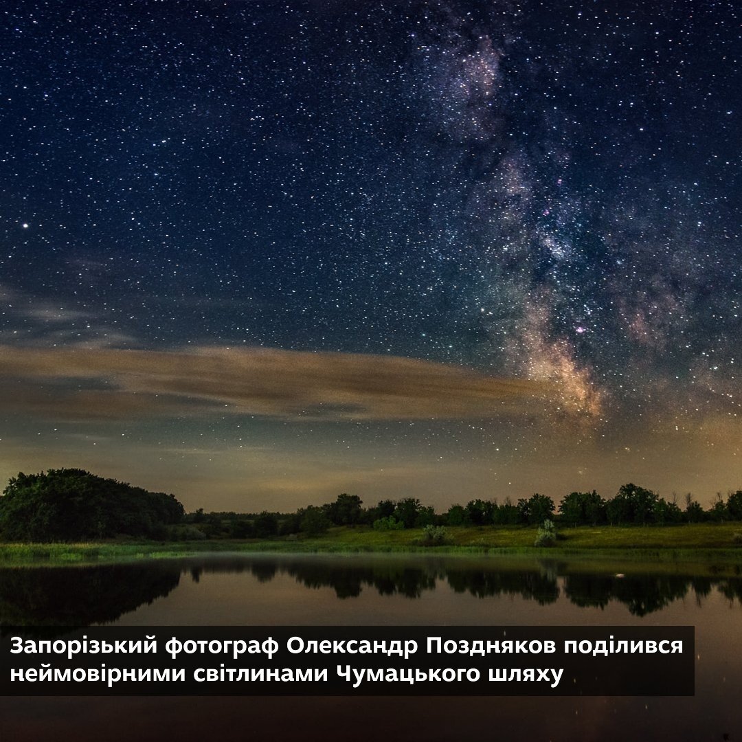 • Запорізький фотограф Олександр Поздняков поділився неймовірними світлинами Чумацького шляху. Фото зроблені в с. Долинське за 10 км від Запоріжжя.
