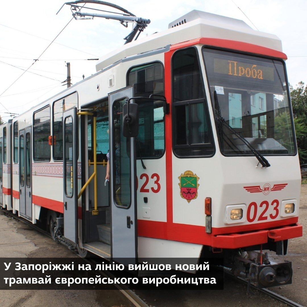 • У Запоріжжі на лінію вийшов новий трамвай європейського виробництва. Всього місто отримало 12 трамваїв, дев'ять з яких вже працюють за маршрутами.