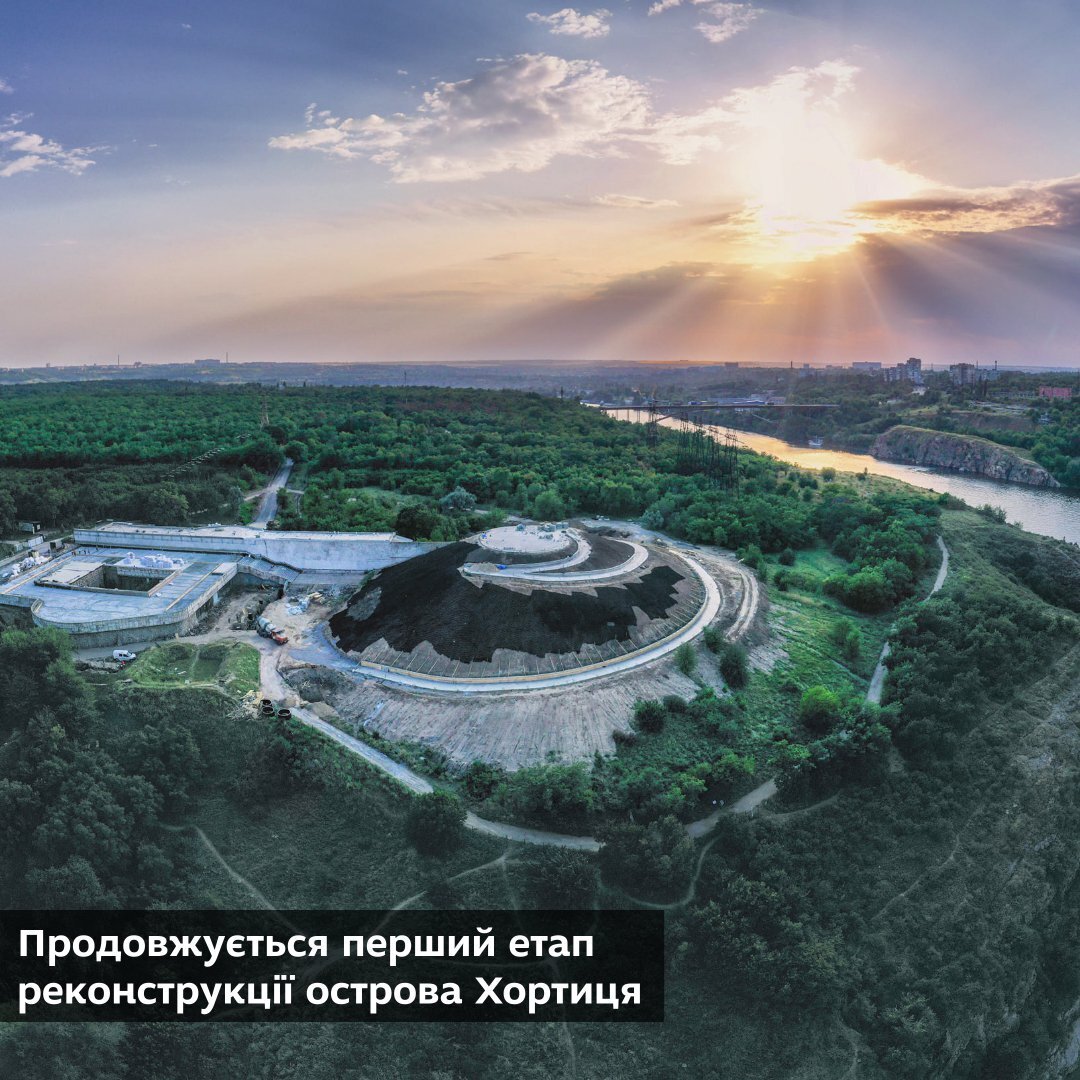 Продовжується перший етап реконструкції острова Хортиця. Найближчим часом заплановано роботи з розширення доріг та збільшення площі автомобільної стоянки. Всі зелені насадження поблизу буде збережено.