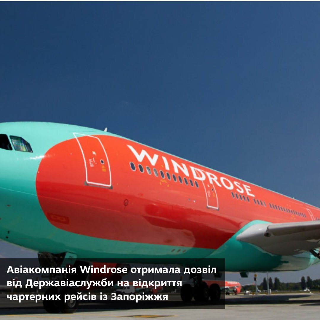 Авіакомпанія Windrose отримала дозвіл від Державіаслужби на відкриття чартерних рейсів із Запоріжжя. Перельоти здійснюватимуться за трьома напрямками: Анталія, Хургада та Шарм-еш-Шейх. Дозвіл діє з 31 жовтня 2021 року по 26 березня 2022 року.