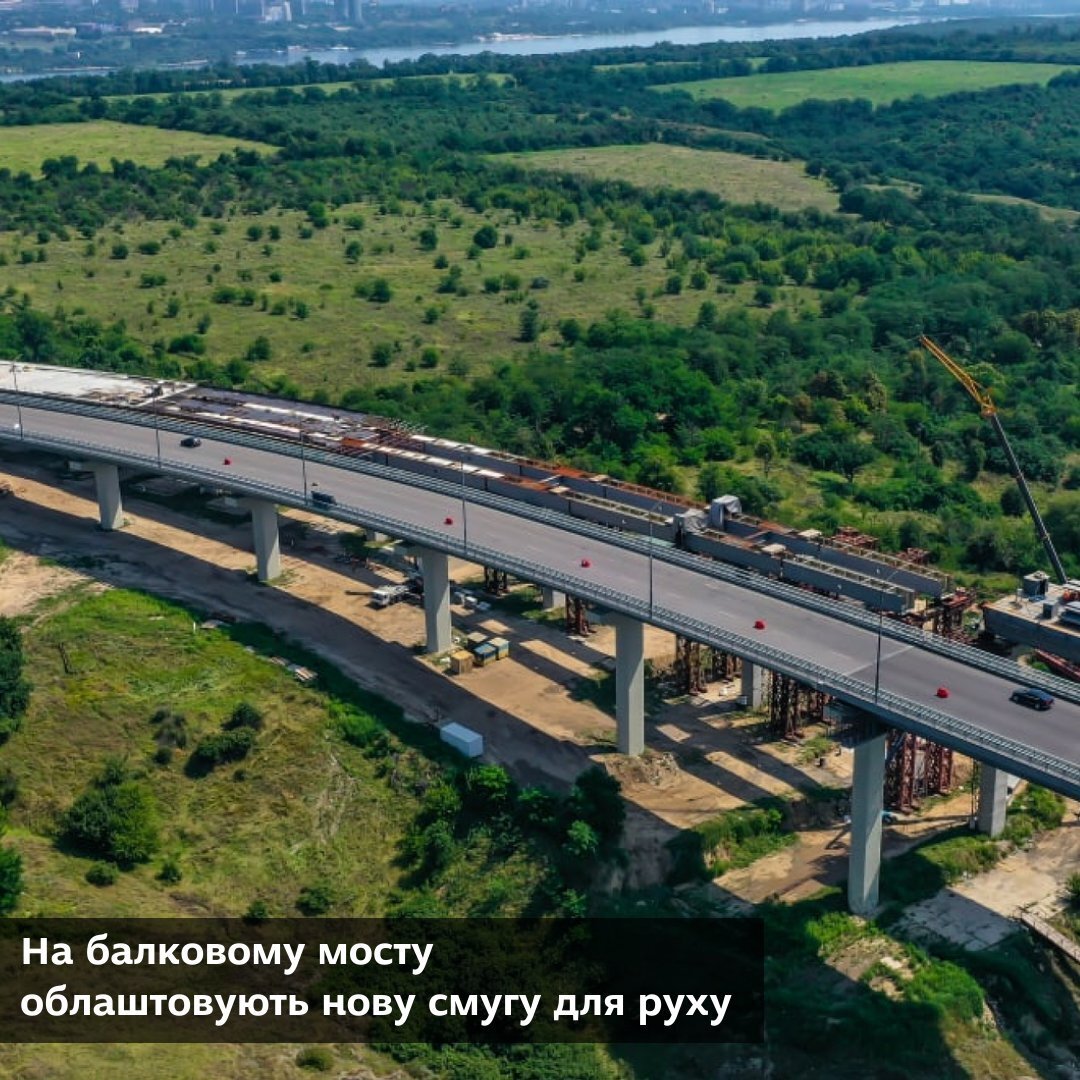 На балковому мосту облаштовують нову смугу для руху. Наразі ведуться роботи з бетонування тротуарів і плит проїзду. Цьогоріч планується завершити будівництво та здати об'єкт в експлуатацію.