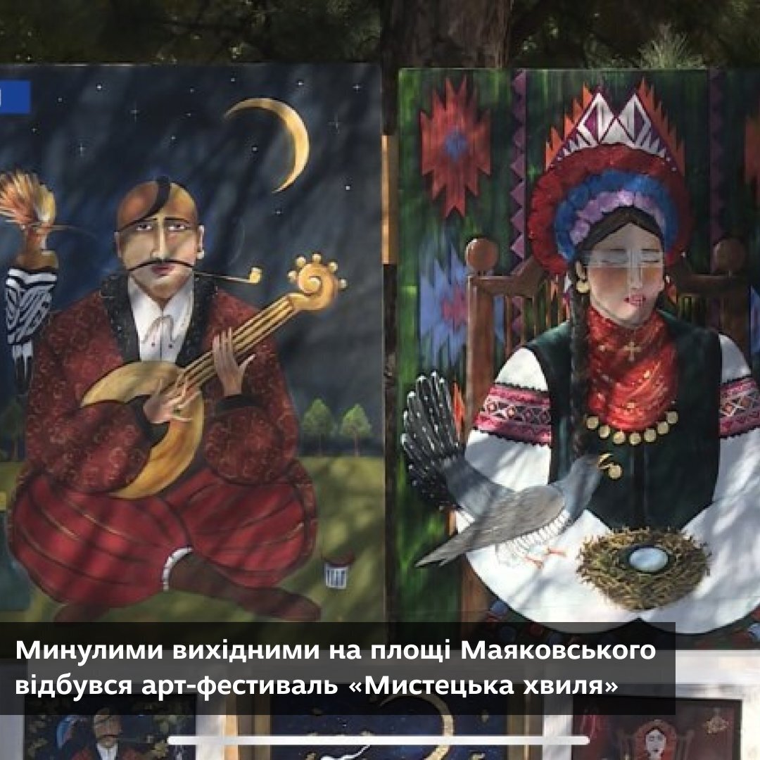 Минулими вихідними на площі Маяковського відбувся арт-фестиваль «Мистецька хвиля», що об’єднав акторів, музикантів, дизайнерів, художників та інших творчих майстрів міста. На гостей фестивалю чекали різноманітні перформанси, виставки та майстер-класи. Можна було зробити бодіарт або ж приєднатись до пленеру з живопису.