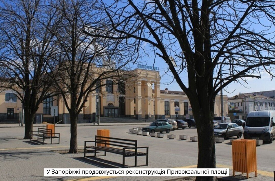 • У Запоріжжі продовжується реконструкція Привокзальної площі. Нині триває вже другий етап робіт, який передбачає оновлення тротуарної плитки на правому боці площі та облаштування прилеглої території. Роботи з реконструкції мають завершити до 1 травня 2021 року.