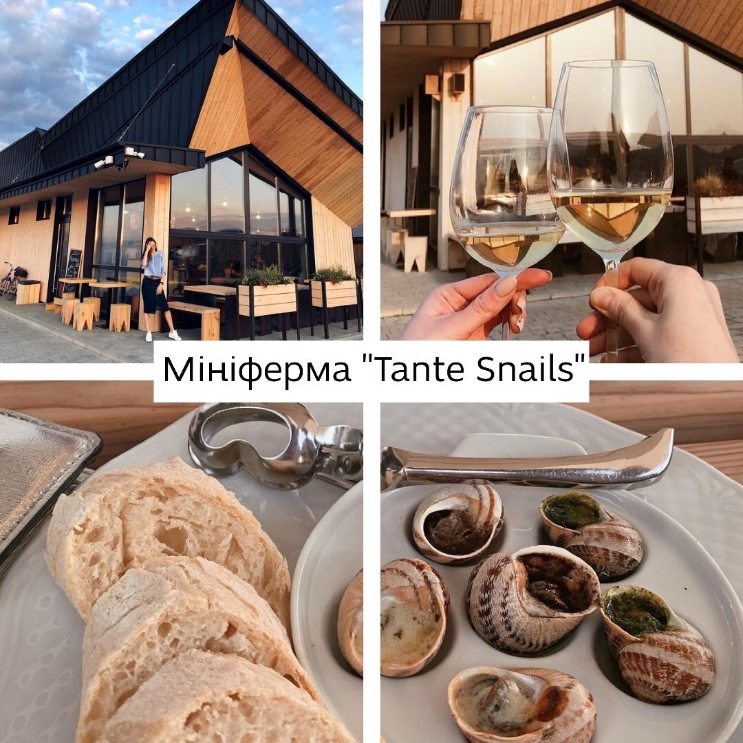 На фермі понад чотири роки вирощують виноградних равликів - вишуканий делікатес французької кухні. Гостям проводять екскурсії та дегустації, де пригощають равликами по-бургундськи та ожиновим вином. Віднедавна на фермі почали розводити жаб, тепер "Tante Snails" ще і єдине жаб'яче господарство в Україні.