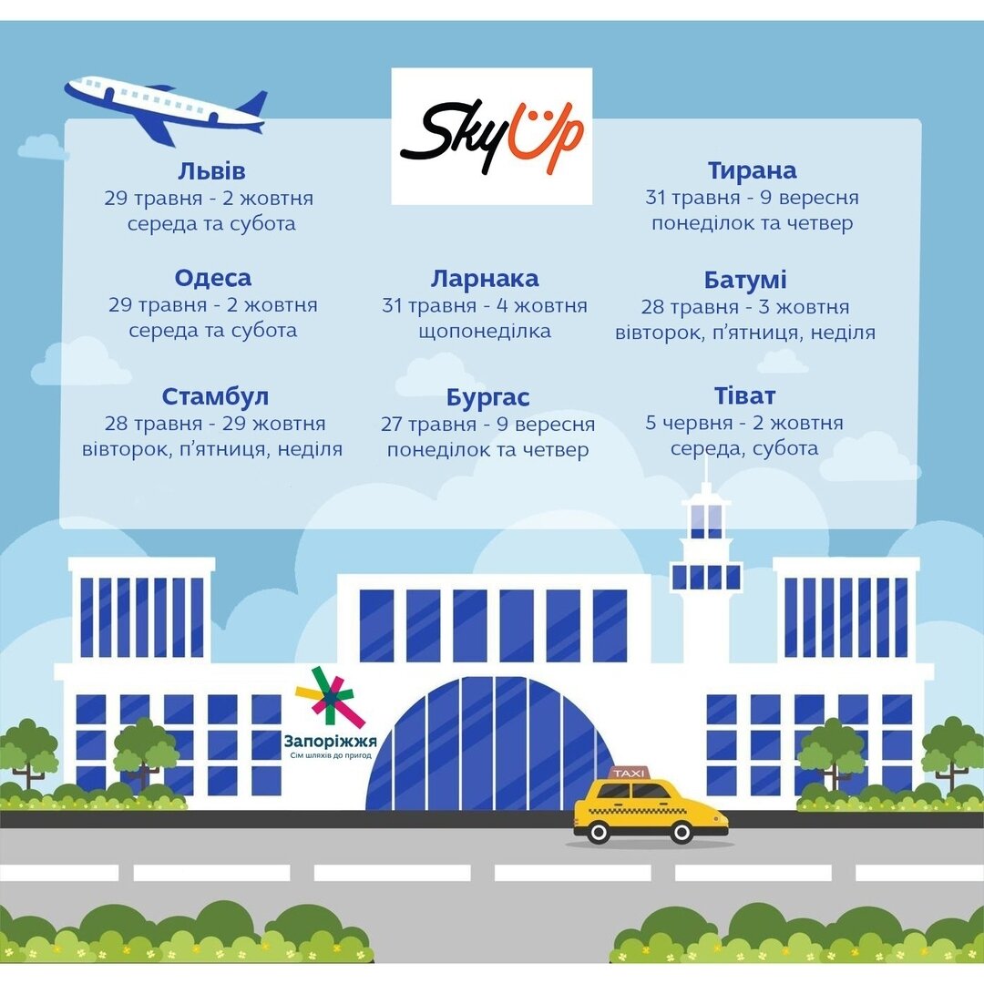 Міжнародний аеропорт «Запоріжжя» представив польотну програму на літній сезон. Зробили для вас зручну інфографіку, аби швидко дізнатися, куди можна буде полетіти вже найближчим часом.