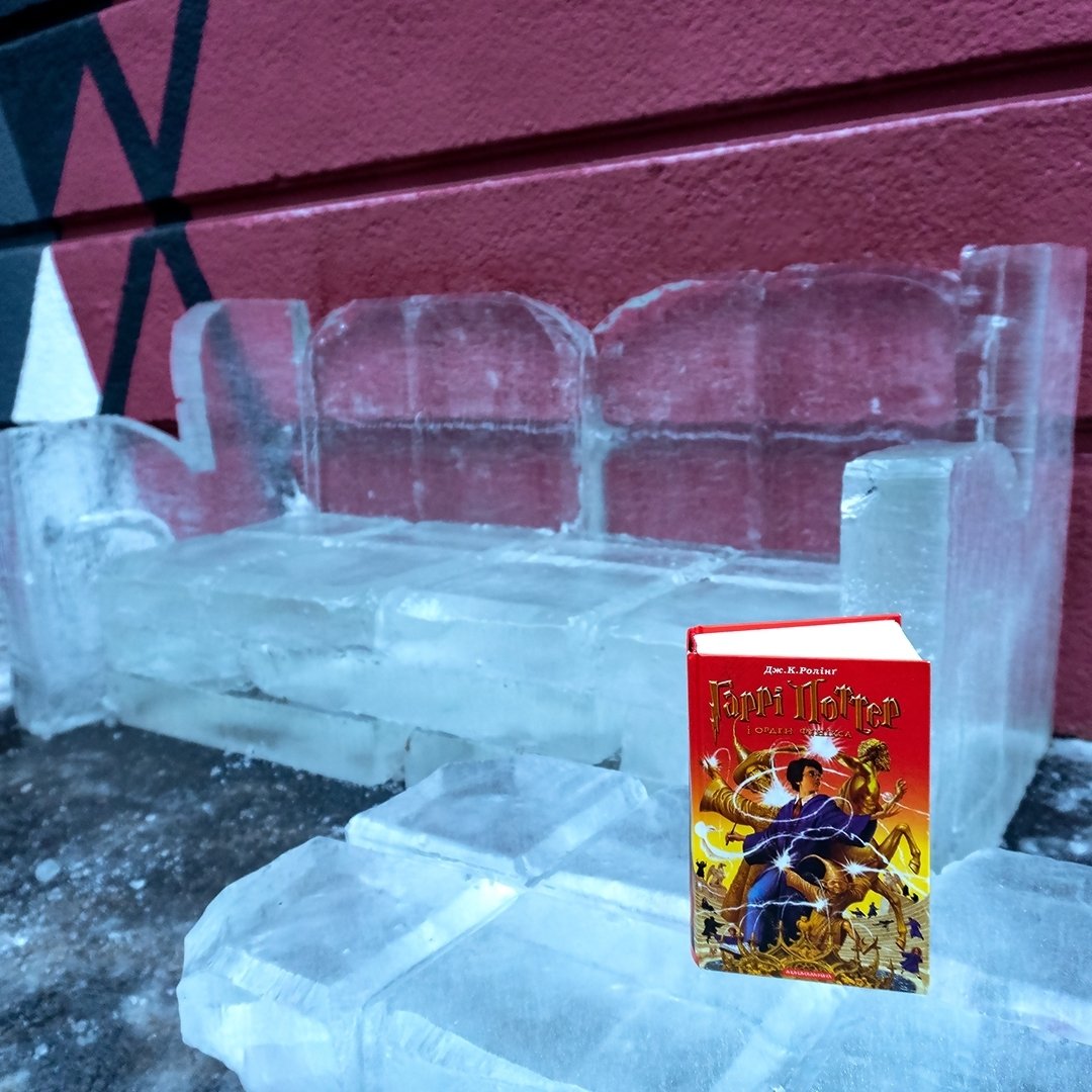 Поблизу трьох оновлених бібліотек Запоріжжя з’явились льодові скульптури. Незвичайні крісла для читання створені з великих крижаних блоків. Для виготовлення однієї скульптури майстри використовують близько 500 літрів води.