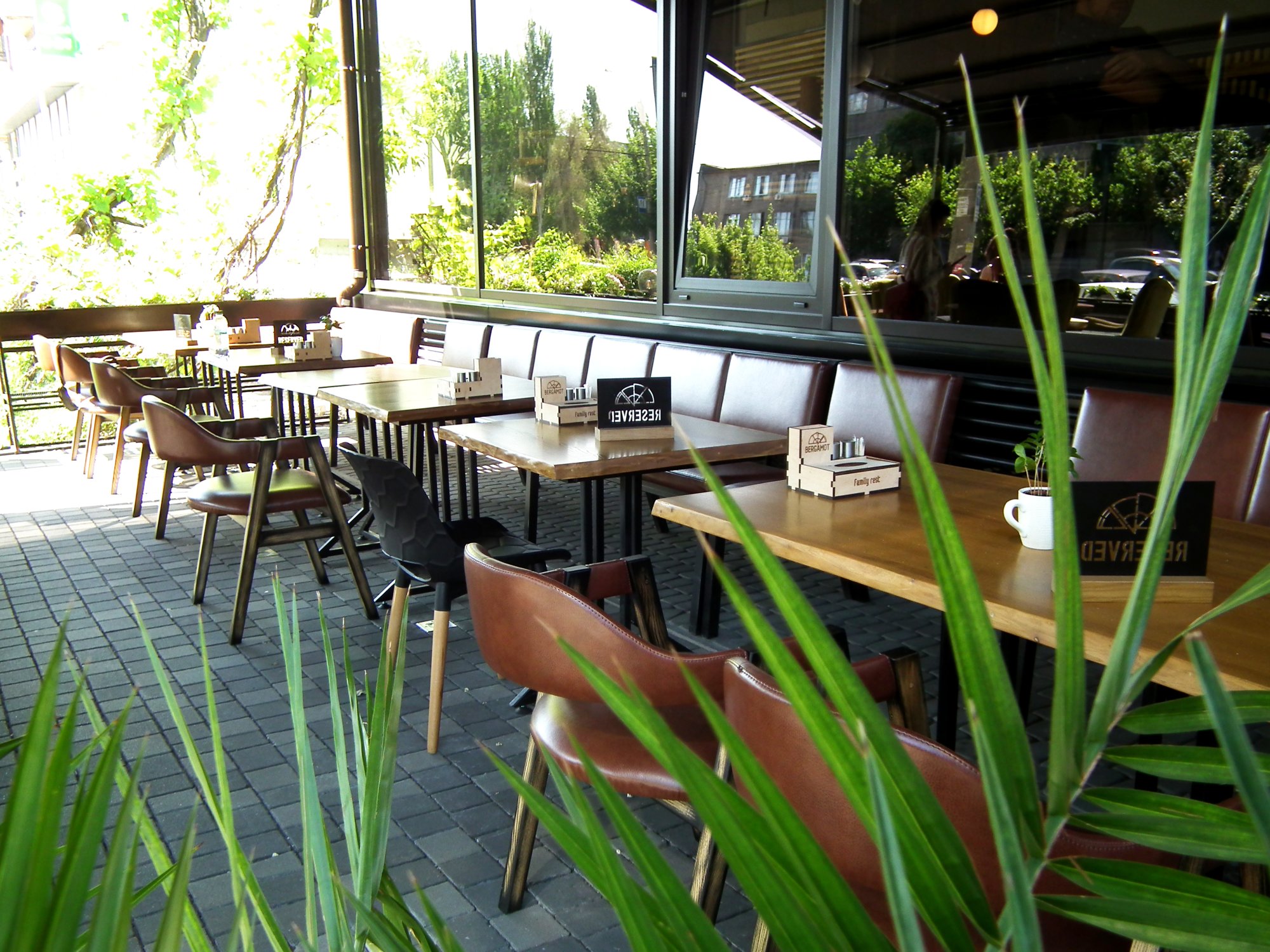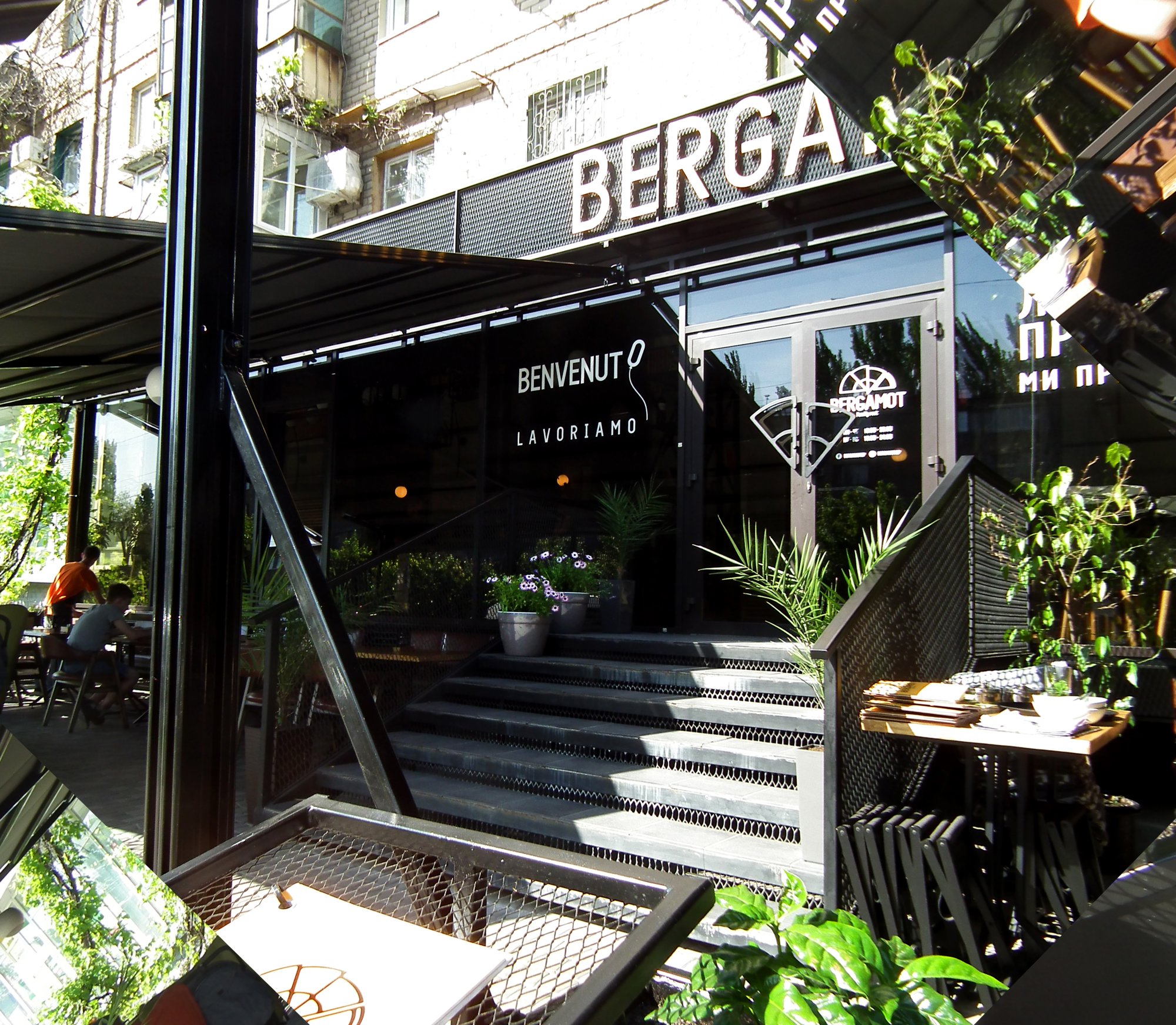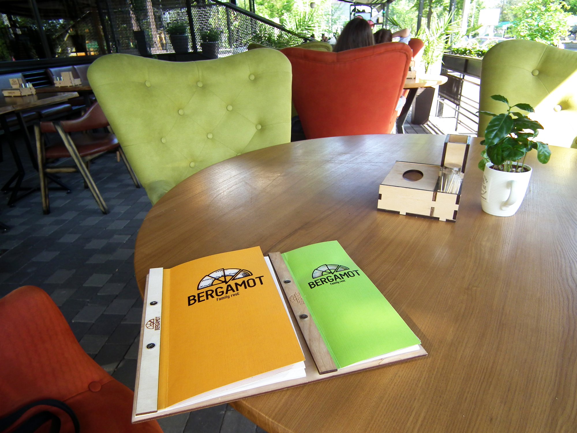 Тут пропонують страви італійської та японської кухні. Сніданки у Бергамоті подають до 13-00 години. Можна замовити вівсяну кашу з карамеллю, яйця-пашот або сирники. Італійська частина меню - це також великий вибір піци. Серед напоїв є фірмові настоянки. Чорна смородина з м’ятою, обліпихова, чорнична чи кизилова. Дитяче меню містить корисні страви, а дорослі можуть скуштувати червноний борщ з беконом.