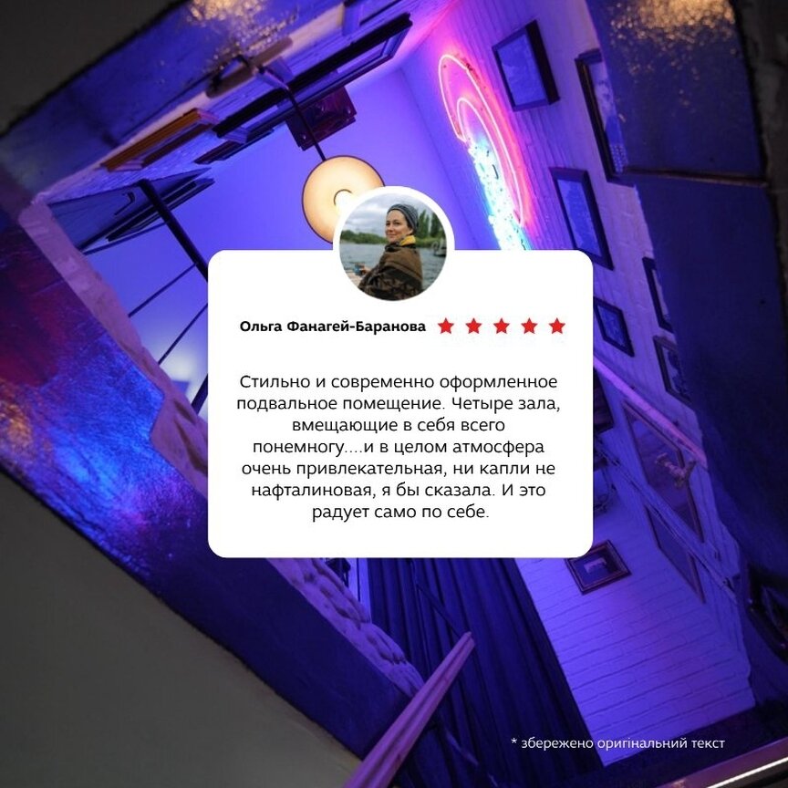 • Ольга Фанагей-Баранова: "Стильно и современно оформленное подвальное помещение. Четыре зала, вмещающие в себя всего понемногу....и в целом атмосфера очень привлекательная, ни капли не нафталиновая, я бы сказала. И это радует само по себе"