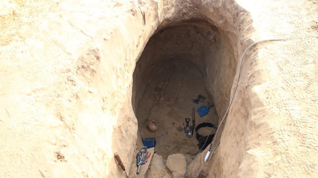 Похований воїн, за давніми мірками, був гігантом – його зріст сягає близько 1,8 метра. В похованні археологами було виявлено залізний ніж з кістяним руків’ям, рештки колчана з бронзовими стрілами та жертовну їжу.