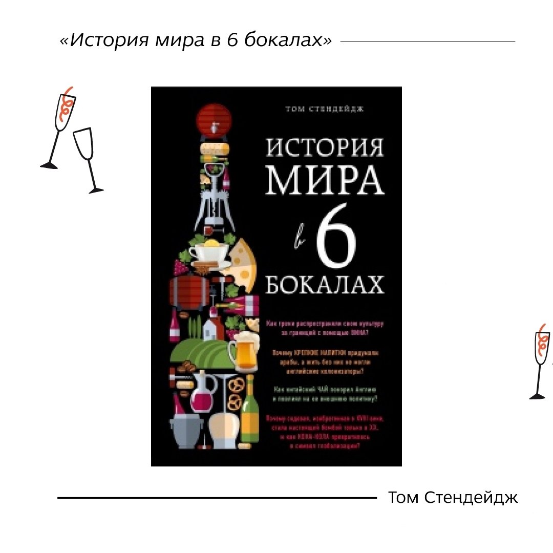 Книга не лише розповідає історію виникнення вина, але й пропонує дізнатися більше про чай, каву, пиво, міцний алкоголь та Coca-Cola - кожен напій має дуже цікаву історію. Рекомендую для загального розвитку.