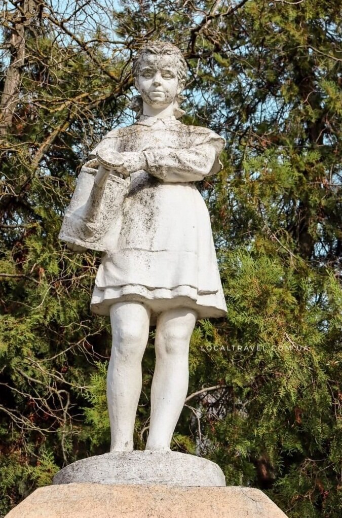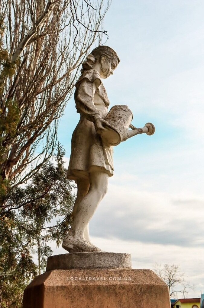 Скульптура дівчинки з лійкою, дорога поблизу смт. Якимівка