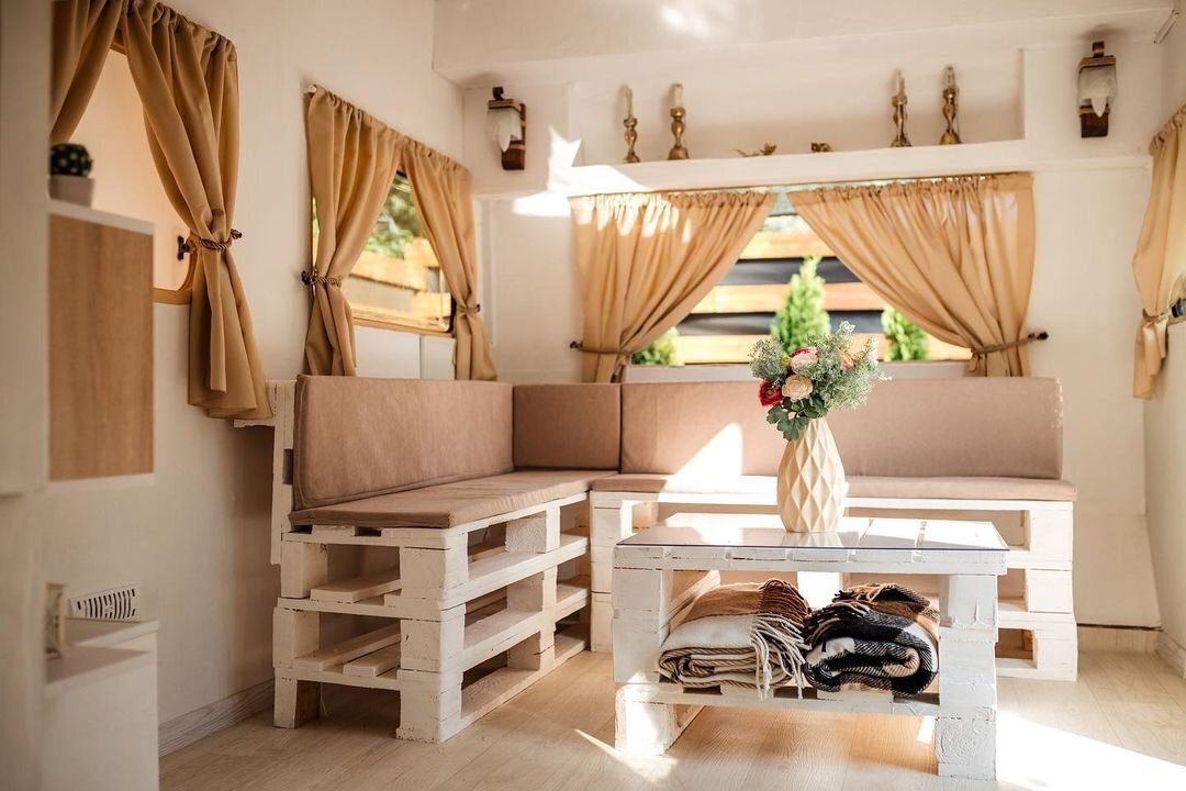 Трейлер не тільки прекрасно виглядає зовні, але й чудово задекорований всередині. Купа стильних деталей чудово доповнять загальний настрій. А кожна пора року буде надавати цьому місцю особливої атмосфери.