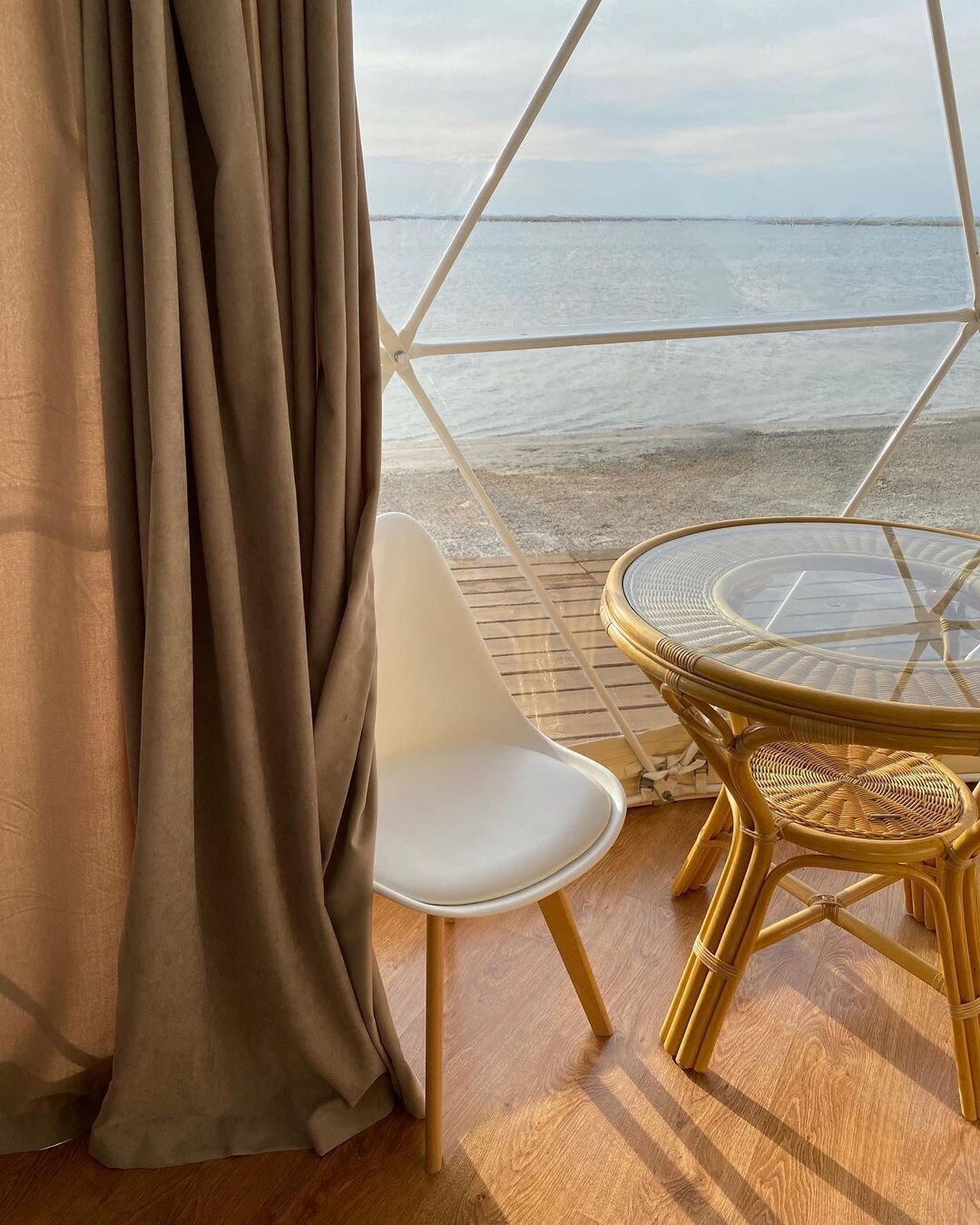 Сферичні намети глемпінгу мають все необхідне для комфортного відпочинку. А крізь панорамні вікна відкриваються чарівні краєвиди. Нещодавно будиночки утеплили і тепер вони повністю пристосовані для зимового проживання. Так, так, Бердянськ не зовсім поруч. Але ж це море. А воно прекрасне в будь-яку пору року.