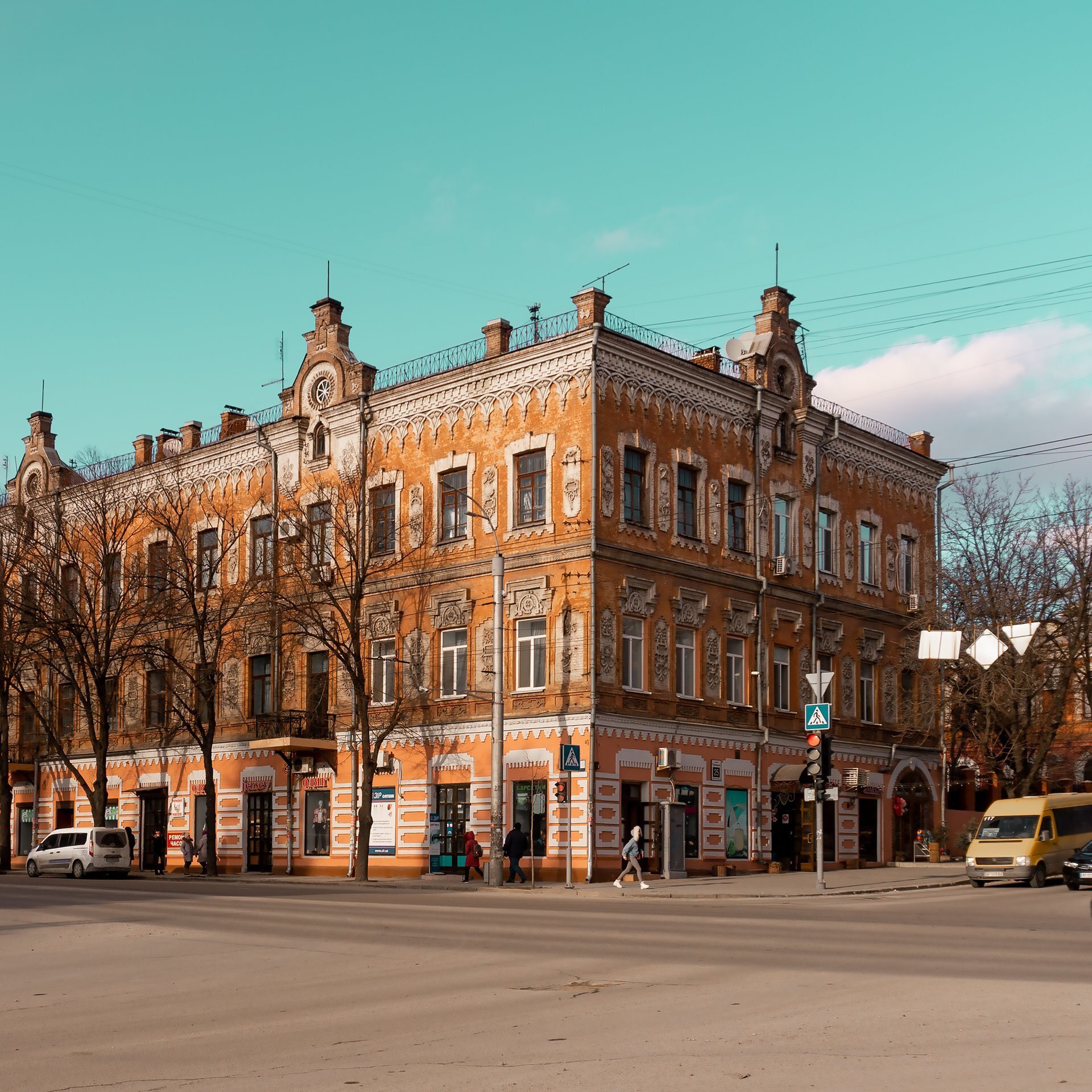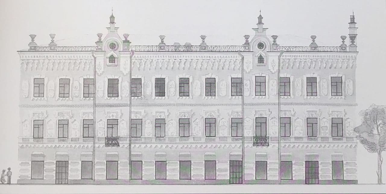 Перший триповерховий прибутковий будинок Олександрівська, зведений у 1901 році.  Будівлю виконано в стилі еклектики з елементами  русько-візантійського стилю та готики.
