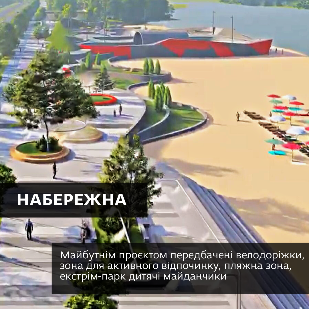 У листопаді 2021 у Запоріжжі було представлено ескіз майбутнього проєкту з благоустрою набережної. Проєктом передбачені велодоріжки, зона для активного відпочинку, пляжна зона, екстрім-парк і дитячі майданчики. Також згідно ескізам можливе розширення тротуарної зони, облаштування пішохідного переходу. Проєкт створено у рамках попреденьої візуалізації та буде презентовано після доопрацювання.