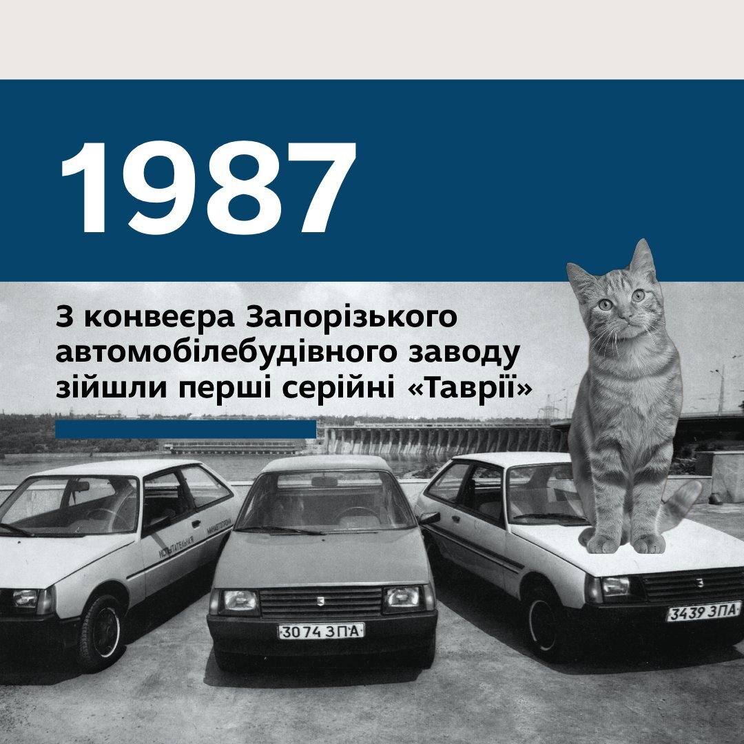 ▪️ 1987 рік – з конвеєра Запорізького автомобілебудівного заводу зійшли перші серійні «Таврії»