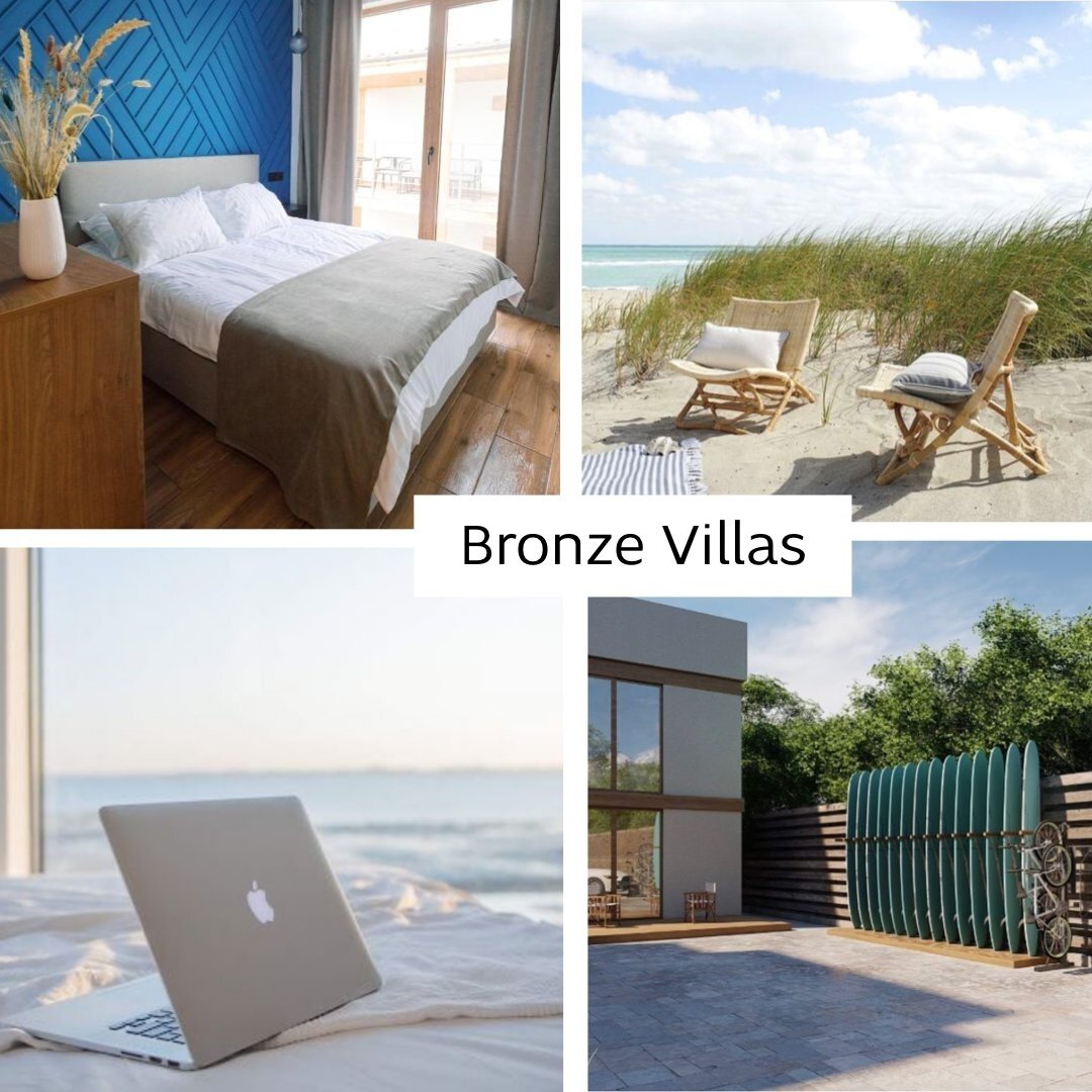 База відпочинку Bronze знаходиться в заповідному куточку коси Пересип. Це місце зберегло енергію первозданної природи: прозоре море, чистий пісок, спів птахів. На території бази є місце для приготування барбекю, спортмайданчик. Тут можна відпочити на пляжі з шезлонгами, порибалити та пограти в настільні ігри, орендувати велосипед або приладдя для кайт-, віндсерфінгу.  Для дітей облаштовано ігровий майданчик. На території є магазин, а для вашого домашнього улюбленця у Bronze завжди готовий матрацик для сну та власний посуд.