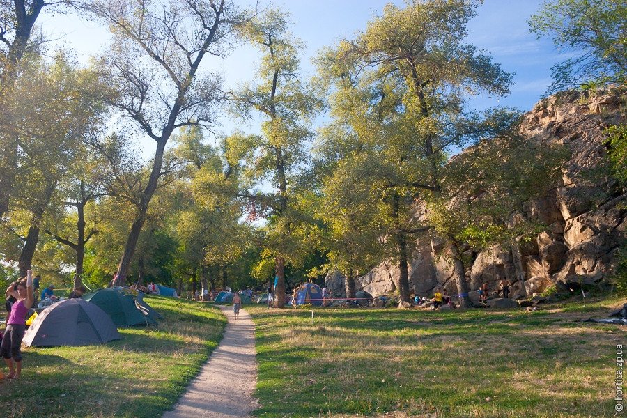 Туристичний пляж традиційне місце відпочинку містян на острові Хортиця. Це єдина територія, що відділена від лісу скелястими схилами, тут дозволено розпалювати багаття, а достатньо великий піщаний пляж – робить цей куточок острову хортиця майже ідеальним для відпочинку.