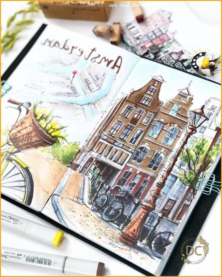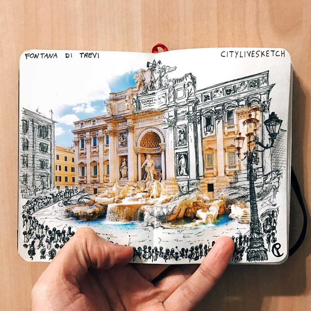 Окрім малюнків занотовуйте ваші враження, записуйте спогади, зберігайте речі на згадку про те чи інше місце. Листівки або квитки, які ви можете замалювати пізніше наповнять кожну сторінку сенсом. Ви можете не знати, як виглядатиме наступна сторінка, але можете вдало використовувати все що вас оточує аби передати настрій.
