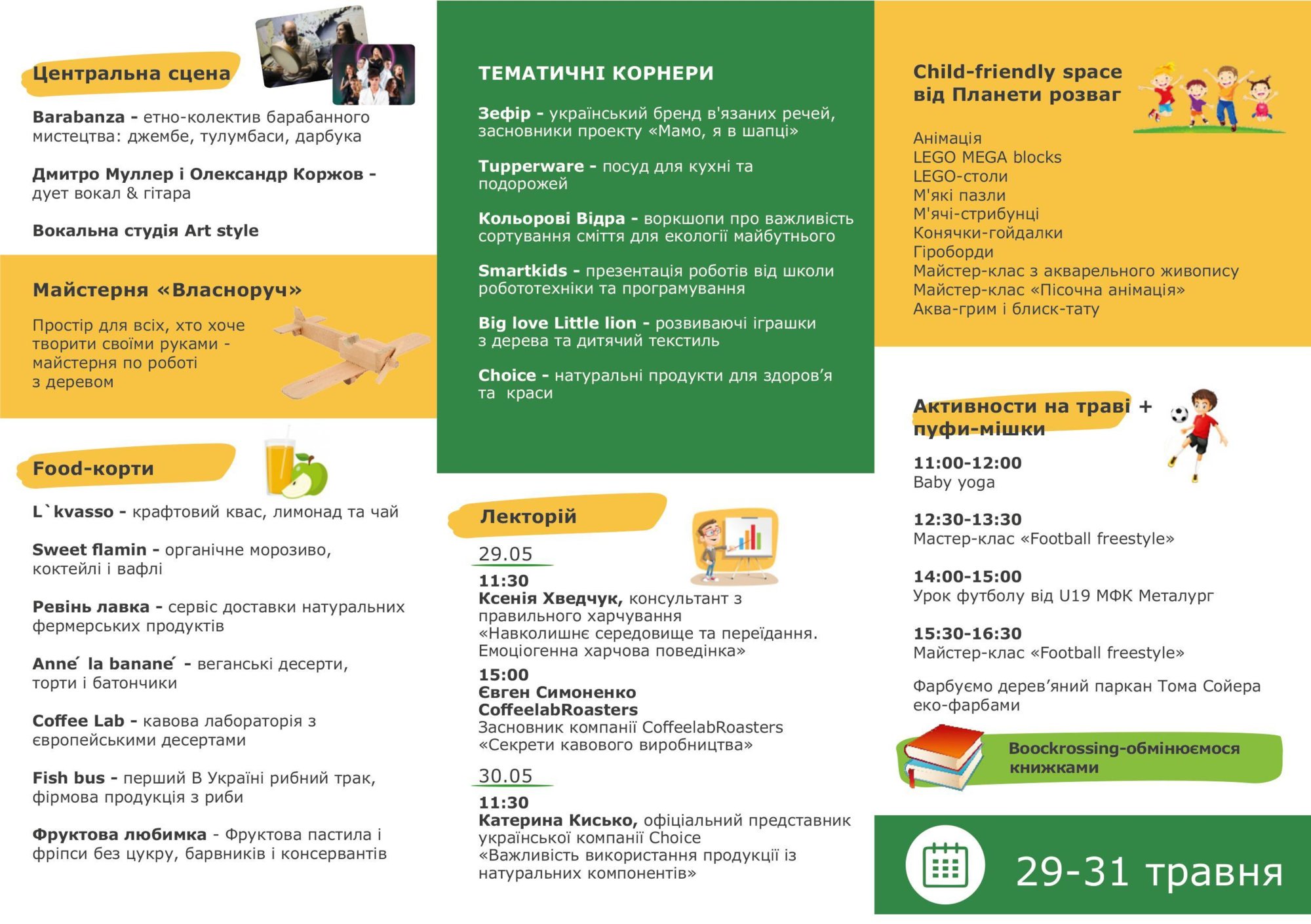 Еко-форум-2019 пропонує насичену програму з освіти, професійних зустрічей, активностей та розваг. У дводенному заході передбачено можливості для проведення: