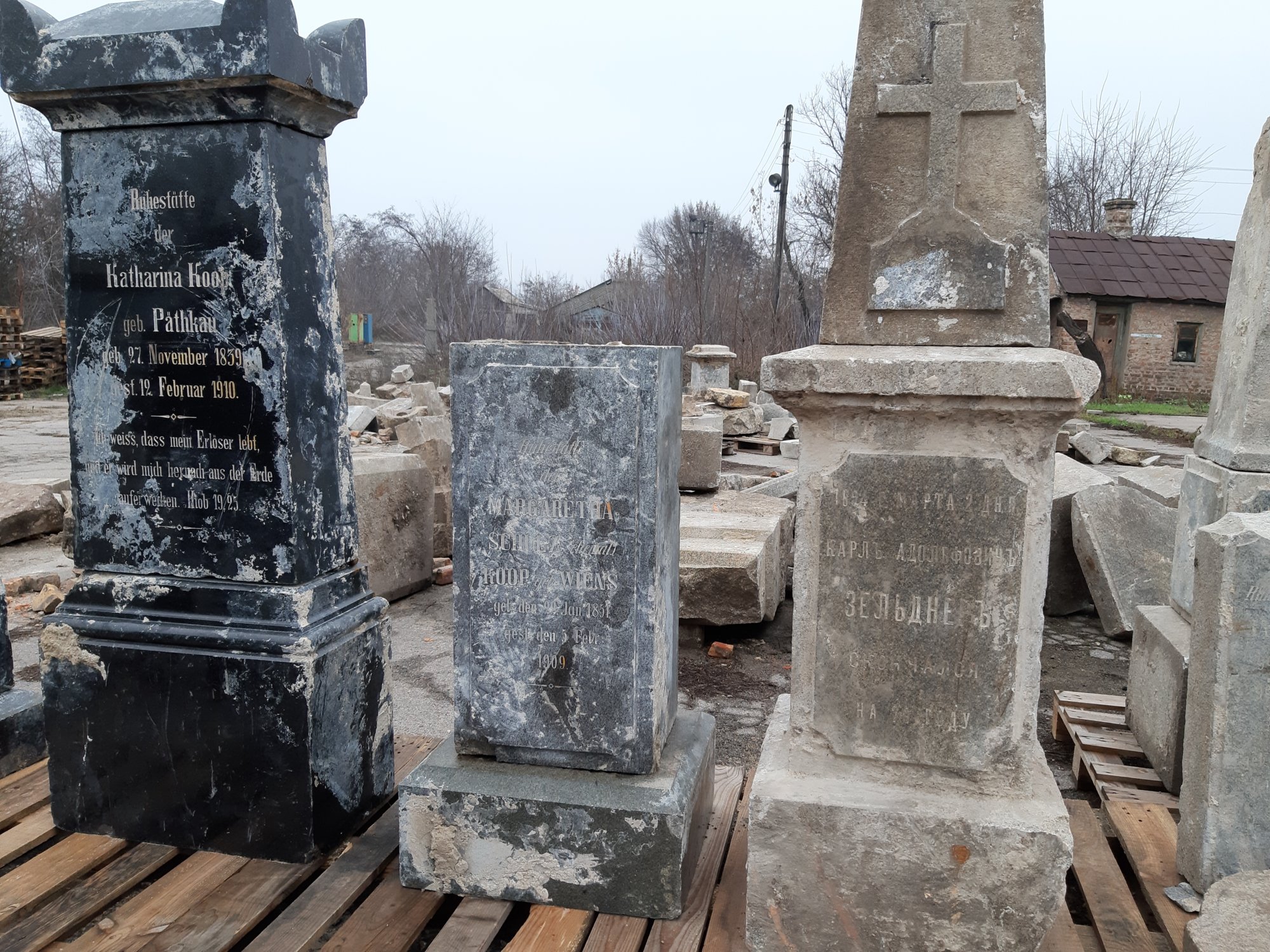 З фундаменту зруйновної будівлі були визволені ряд надгробків, на яких добре зберіглась інформація про похованих представників менонітської громади. Серед прізвищ також є і прізвища представників родин засновників відомих підприємств Запоріжжя.