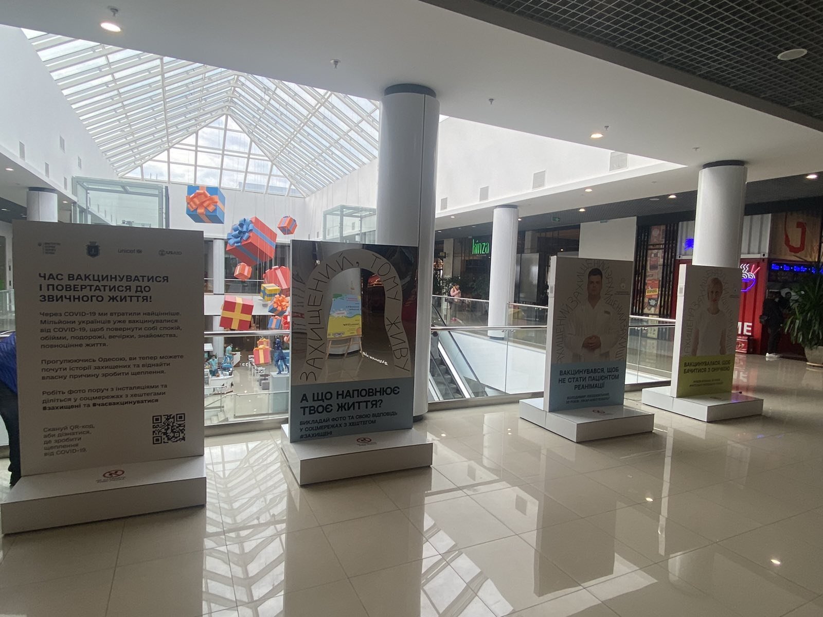 В рамках кампанії «Захищені» у Дніпрі, Львові, Харкові та Одесі діють інтерактивні інсталяції, присвячені перевагам вакцинації від коронавірусної інфекції. Це інтерактивні стенди з історіями українців, які щепилися від COVID-19.