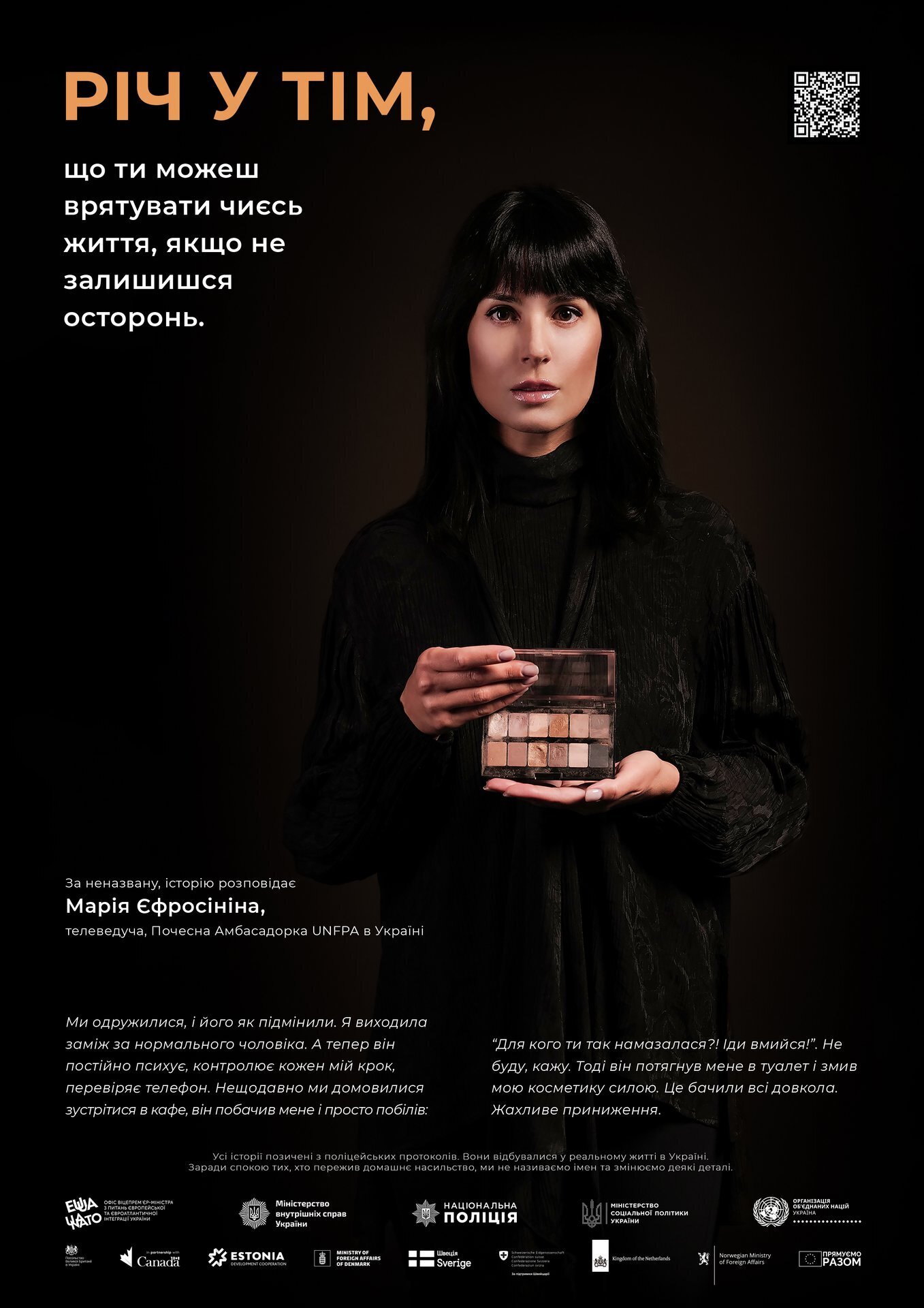 В фокусі кожної історії - річ, що стала знаряддям насильства або асоціюється з ним. Відео завершуються закликом: «Не терпіть насильство - звертайтеся по допомогу за номером 102».