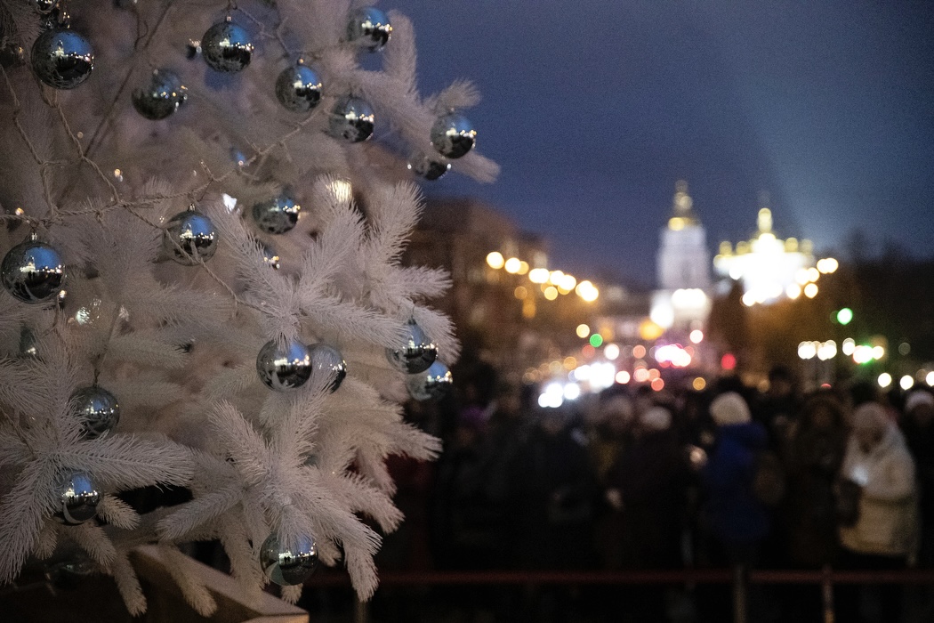 На Софійській площі в Києві урочисто запалили вогні головної ялинки країни. Цьогоріч вона має білосніжний колір, прикрашена 2 тисячами бірюзових іграшок і 2 км світло-блакитних гірлянд. Символічний дизайн ялинки, а також фотозона «Крила Фенікса» створюють казкову атмосферу, привертаючи увагу киян і гостей міста. Усі прикраси були профінансовані меценатами, а масових заходів на площі не передбачено.