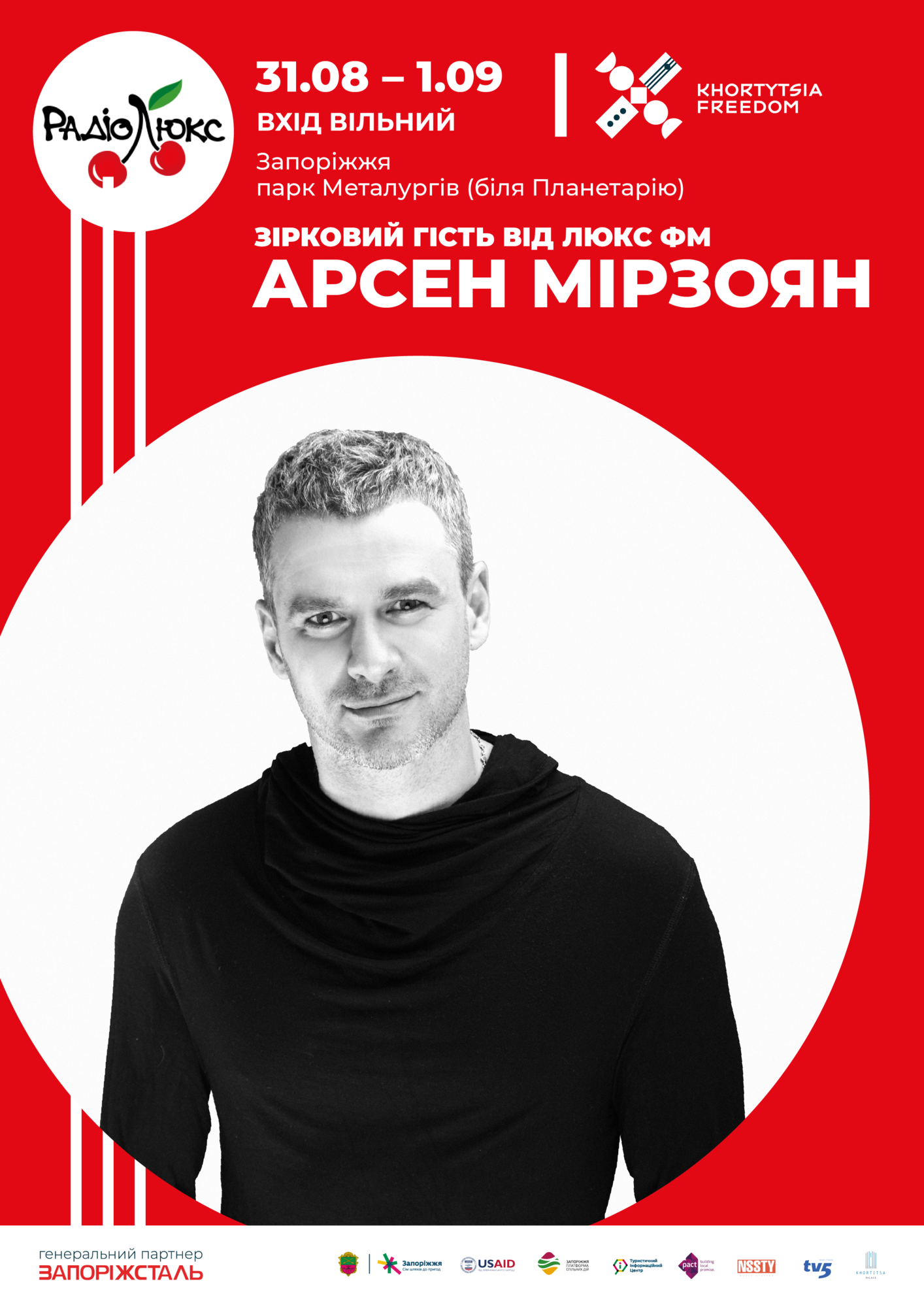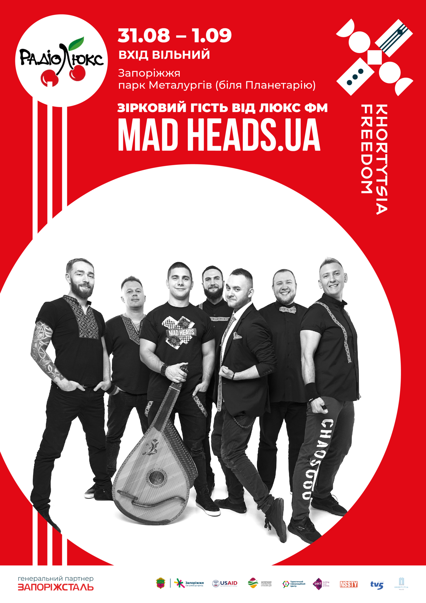 Спеціальний подарунок для всіх гостей фестивалю Khortytsia Freedom від Люкс ФМ, - зоряний десант в лайн-апі фестивалю: MamaRika, Арсен Мірзоян, Mad Heads.UA, KAZKA.