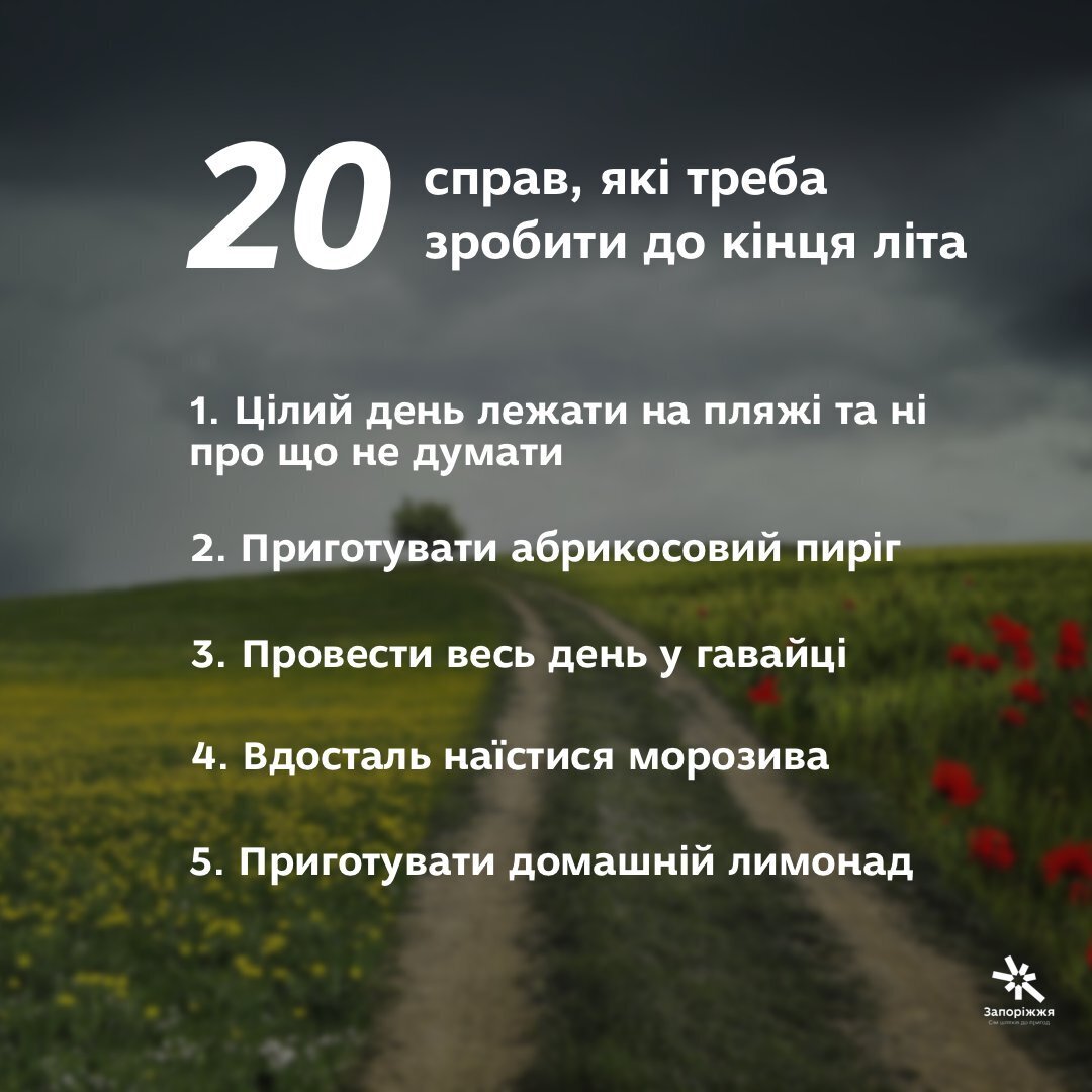 Два місяці сонця й тепла позаду. Але не засмучуйтесь. Ми знаємо, як зробити серпень особливим. Вмикайте турборежим та виконуйте справи з нашого імпровізованого списку. Вам точно буде що згадати осінніми вечорами.